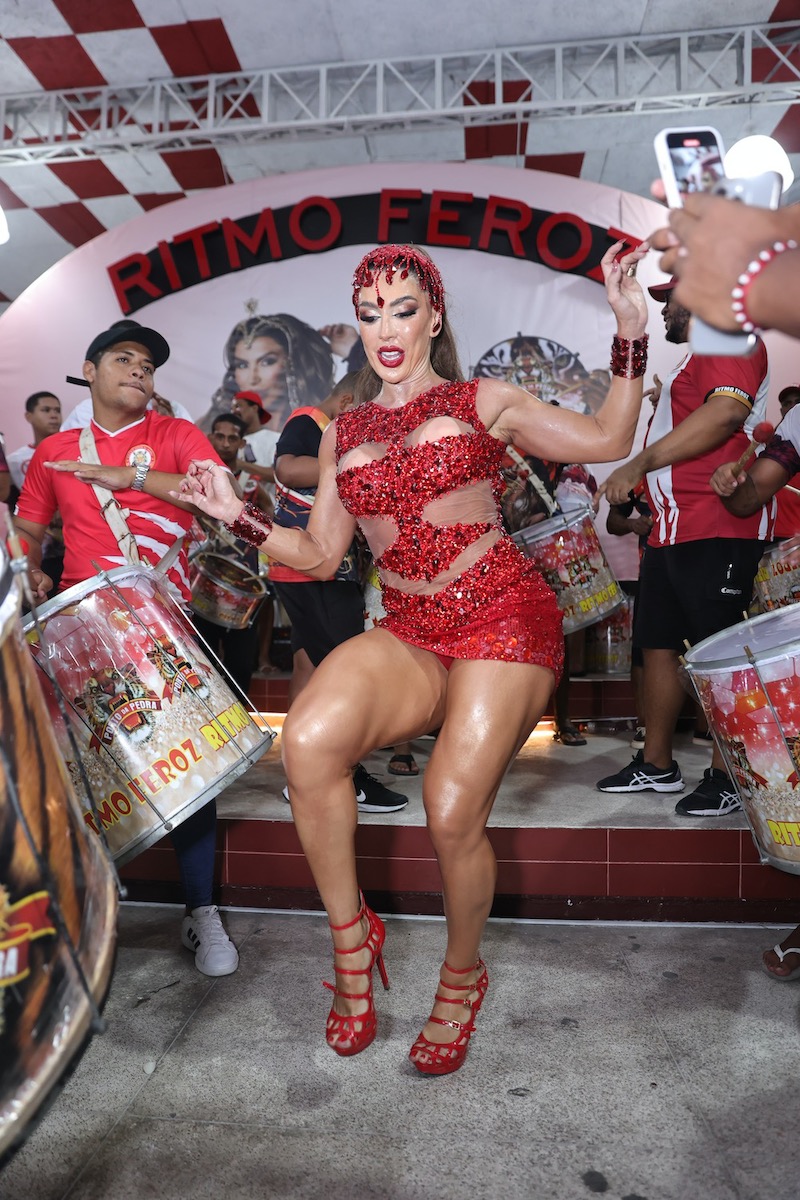 A rainha feroz Andréa Andrade brilha a frente da Bateria Ritmo Feroz de mestre Pablo