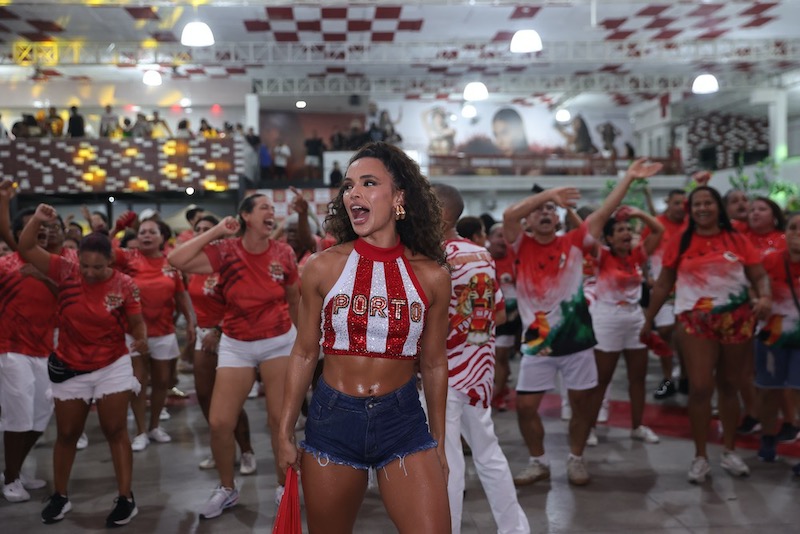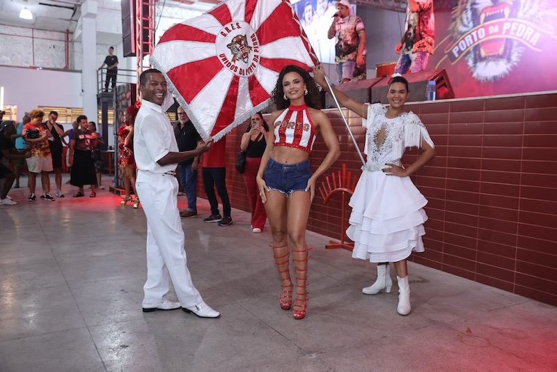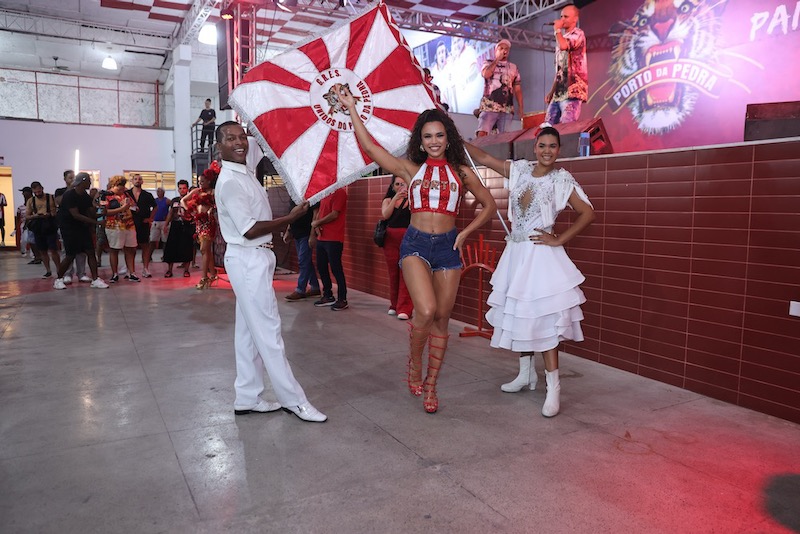 Andréa Andrade rainha de Bateria da Porto da Pedra e as musas Giovana Cordeiro e Anny Dias movimentaram o ensaio de quadra em São Gonçalo
