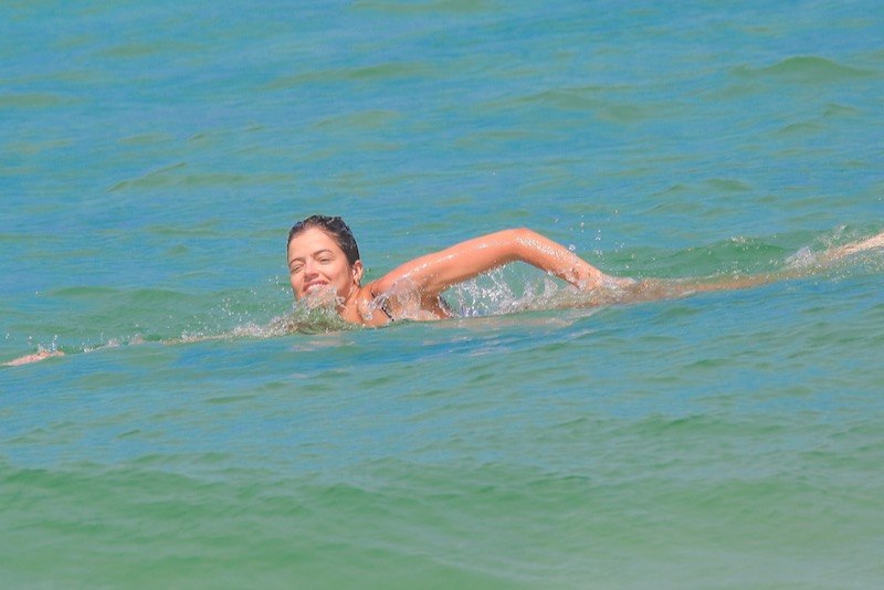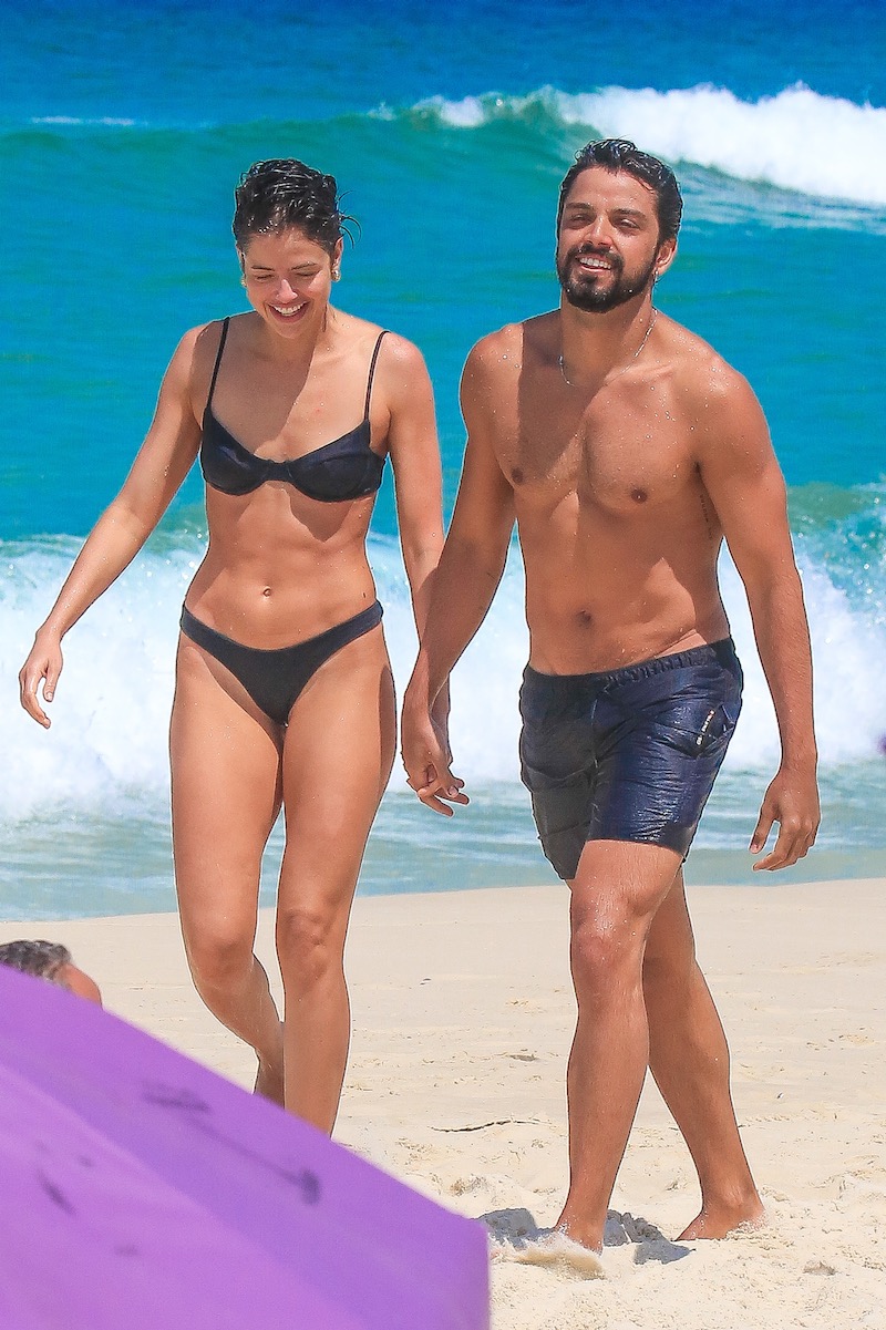 A atriz Agatha Moreira, que interpreta a personagem Luma na novela Mania de Você, da Globo, curtiu um momento de diversão em uma praia da Barra da Tijuca, Zona Oeste do Rio de Janeiro. A estrela surgiu acompanhada de seu namorado, o ator Rodrigo Simas. Os dois esbanjaram alegria e simpatia quando perceberam a presença dos paparazzi na praia e acenaram para as fotos.