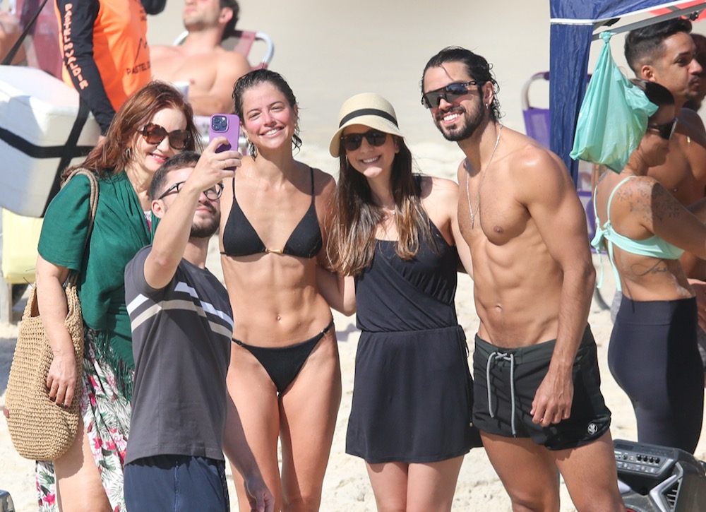Agatha Moreira e Rodrigo Simas enfrentaram a quarta-feira (20) de muito calor no Rio na praia. O casal de atores, ambos de 33 anos, escolheu a Barra da Tijuca para se refrescar e, entre um mergulho e outro, os atores foram tietados por uma família que pediu para tirar fotos, o pedido foi atendido e eles posaram sorrindo para os cliques. Agatha ainda tomou um chuveirada para tirar o sal do corpo e trocou carinhos com Rodrigo.