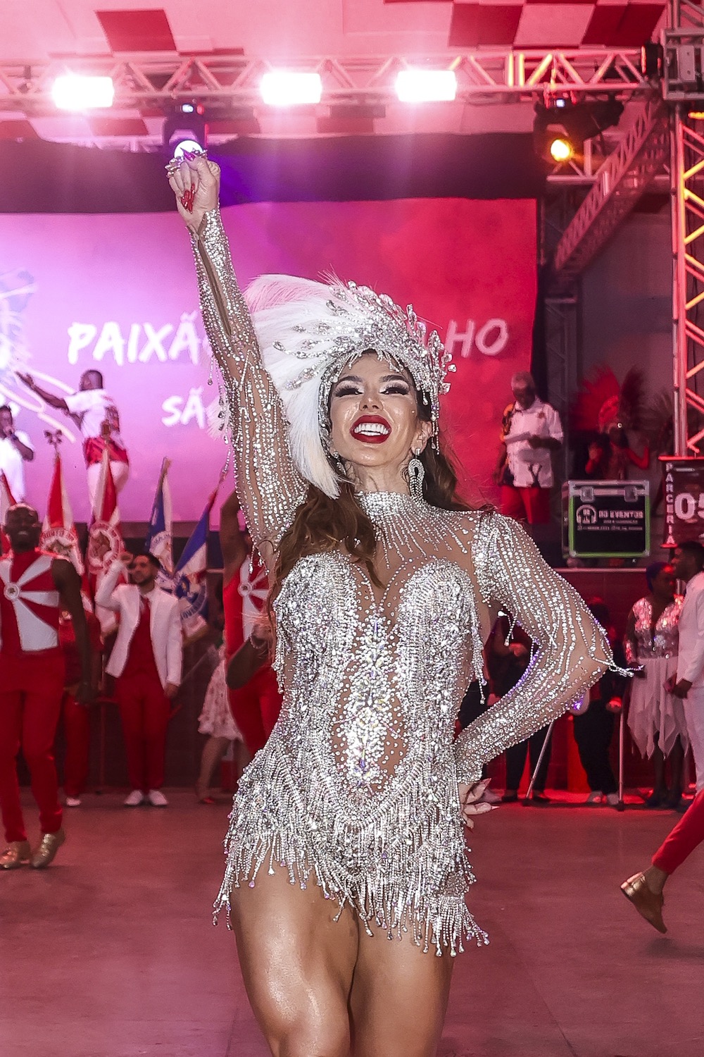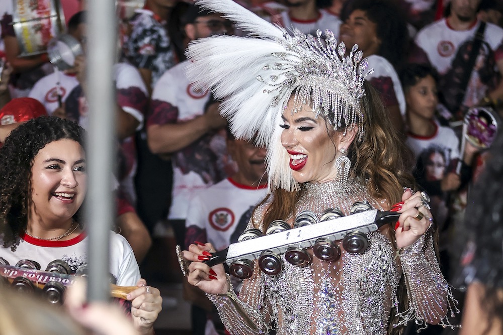 A empresária e influenciadora marcou presença a frenta da bateria na feijoada da agremiação neste sabado 16