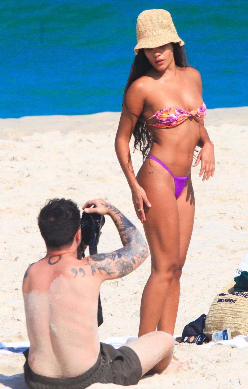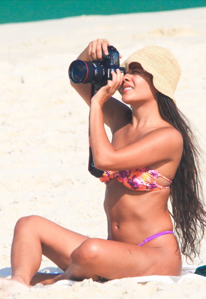 Neste sábado, 20 de julho, Bella Campos curtiu uma manhã ensolarada na Praia da Barra da Tijuca, na Zona Oeste do Rio de Janeiro. A atriz, de biquíni e chapéu de proteção, aproveitou o dia para relaxar e posar para um amigo em uma sessão de fotos para suas renovar sua galeria de fotos das redes sociais.
