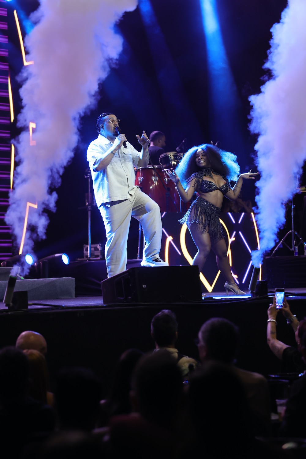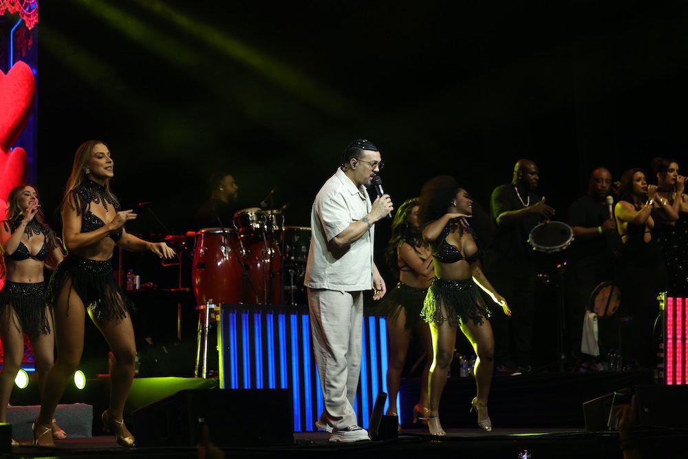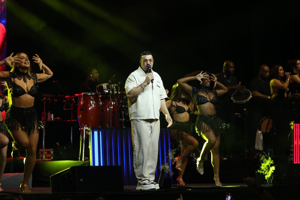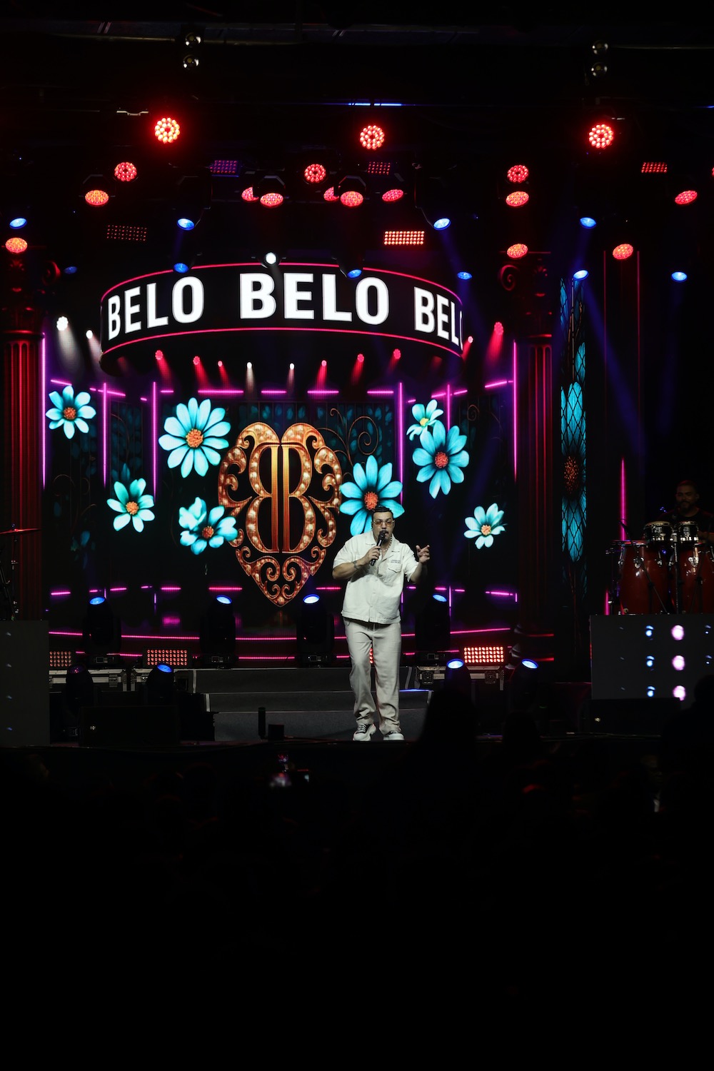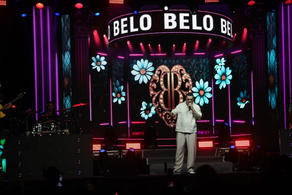 O cantor Belo, de 51 anos, surpreendeu fãs ao estrear um novo visual no palco do Ribalta, no Rio de Janeiro, na noite de sábado (19). Pela primeira vez, ele exibiu os cabelos mais escuros e trançados durante sua apresentação. Imagens do novo estilo já haviam sido divulgadas nas redes sociais na sexta-feira (18). Foram vistos prestigeando o artista a namorada de Belo, Rayane Figliuzzi e a rainha de bateria da Porto da Pedra, Andrea de Andrade que é fã do cantor e estava acompanhada do marido Cesar Thadeu e amigos.