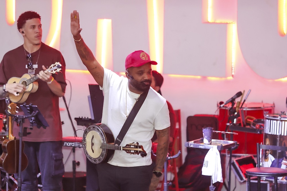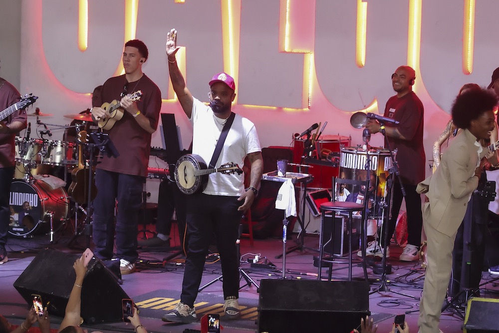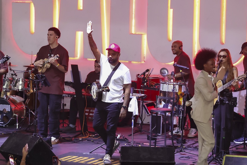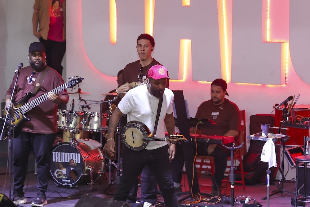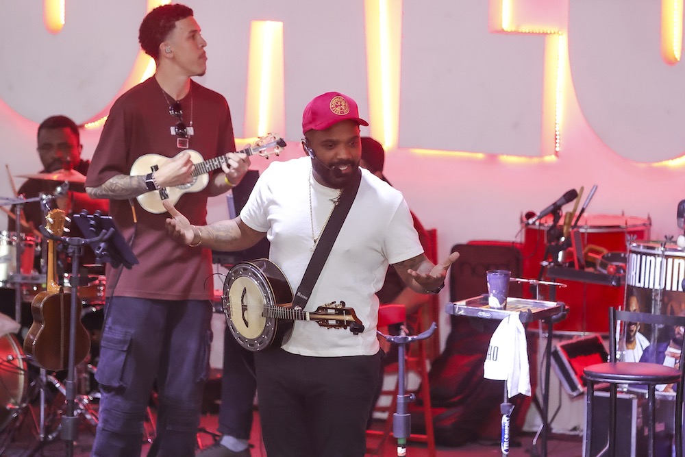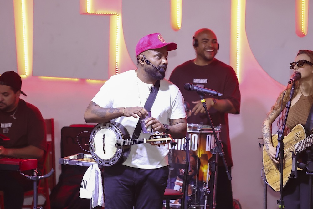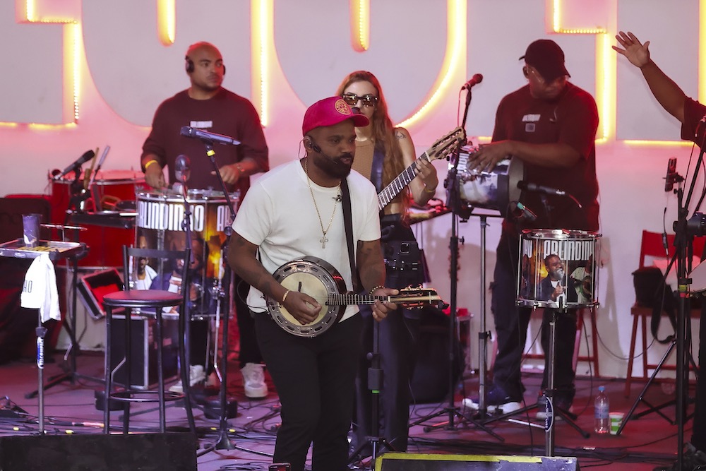 Carla Cristina e Thalita Zampirolli curtem Feijoada do Salgueiro com Arlindinho Cruz
