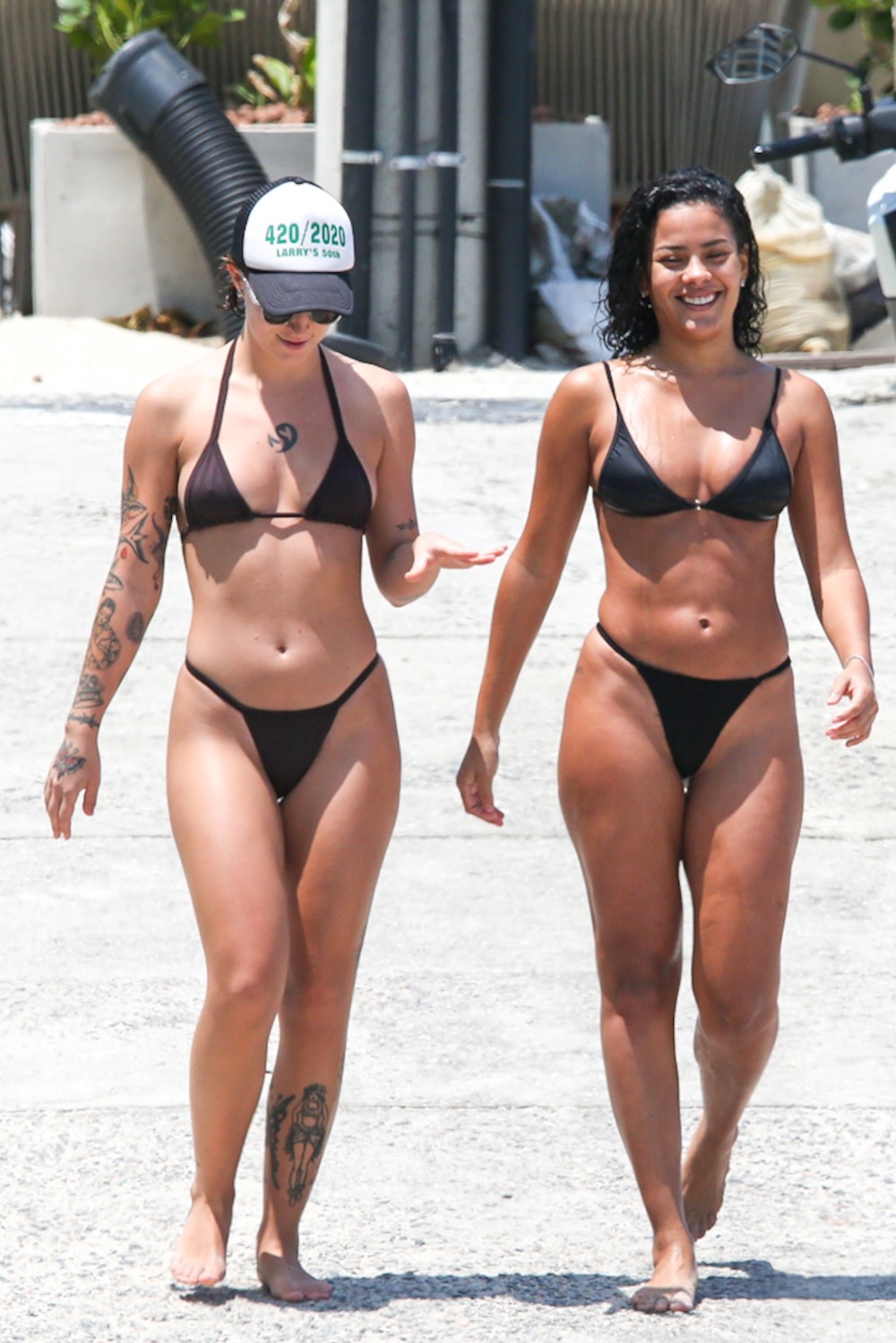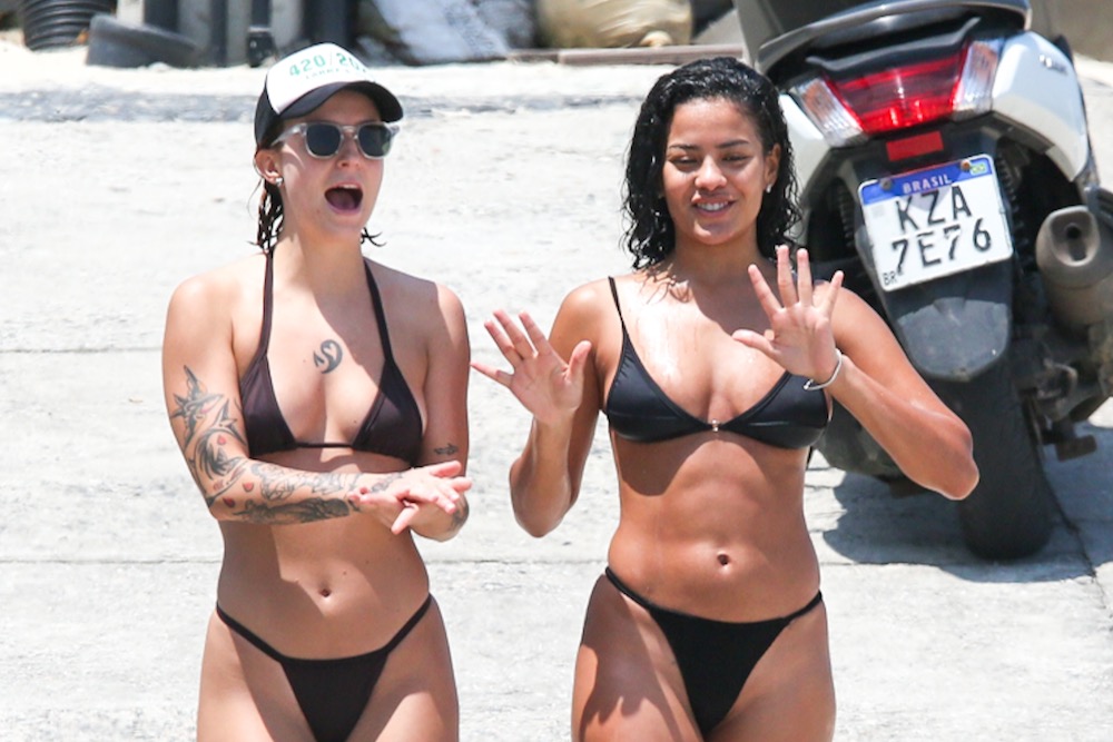 Bela opitou por um mini biquine fio-dental, mostrando sua boa forma, ela estava na companhia da amiga cantora e atriz, Laura Padaratz, as duas caminharam pelo calçadão, da orla da praia de São Conrado Zona Sul do Rio, ao avistarem o fotografo, a artista acenou e ainda mandou beijinhos.