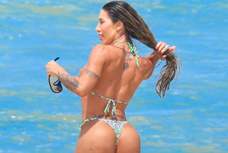 Vestindo um biquíni fio-dental bem estiloso e marcante, a loira foi flagrada enquanto renovava seu bronzeado à beira-mar. A presença de Tati na praia não passou despercebida: seu bumbum sarado e sua figura esbelta atraíram olhares.