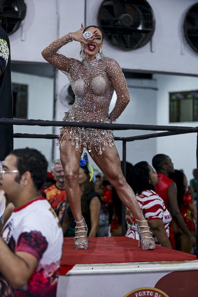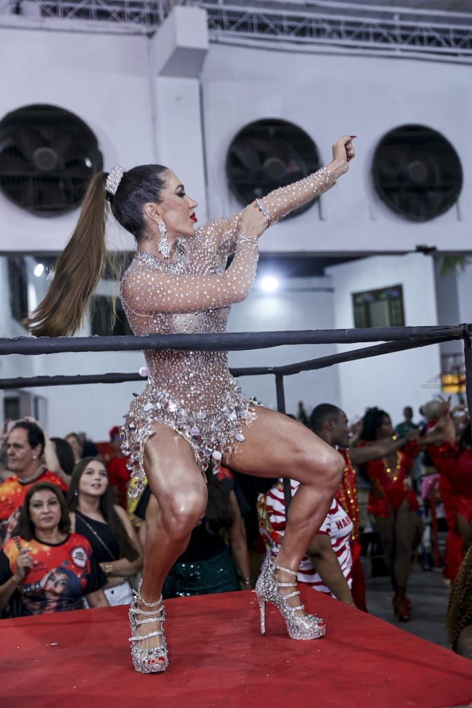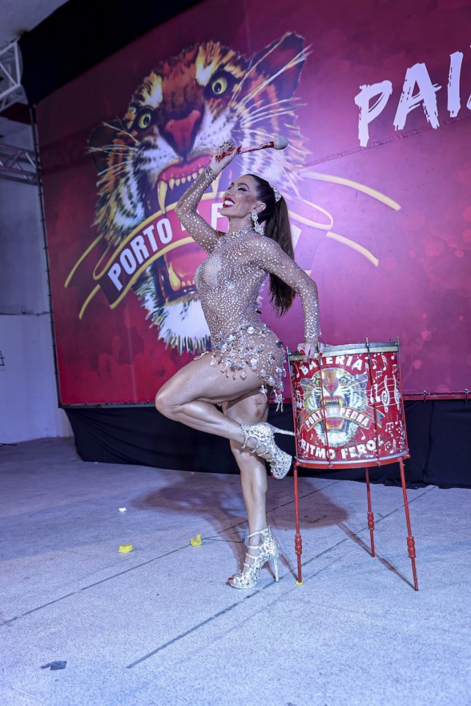 “Eu participei de quase todos os ensaios da escola, pois tenho a convicção de que quanto mais ensaiamos, melhor será a nossa sintonia com a bateria, e mais bonita será a nossa apresentação. Além disso, fui recebida de forma tão calorosa por todos os integrantes da escola que a responsabilidade de estar com eles em um cargo tão importante se torna ainda maior”, comenta a rainha de bateria da agremiação.