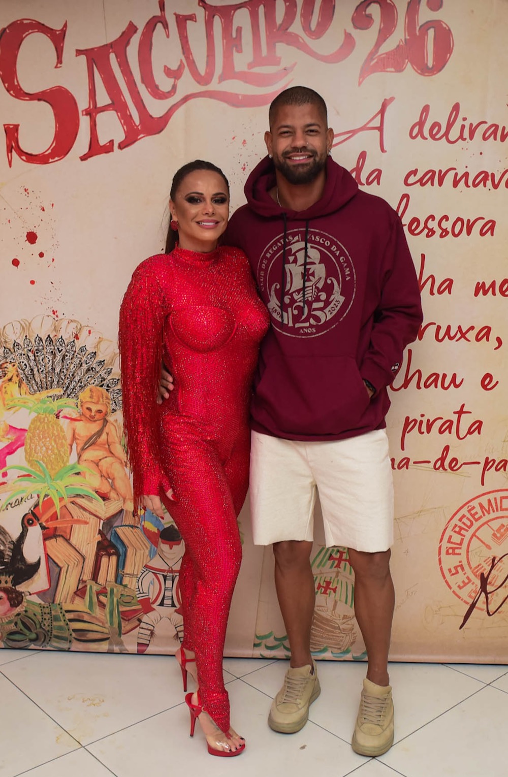 Viviane Araujo esteve com o marido Guilherme Militão na volta do “Salgueiro Convida” a rainha escolheu um look bem representativo: um macacão todo vermelho brilhoso, cor da agremiação. Literalmente de vermelho da cabeça aos pés. A rainha brilhou no evento na quadra da vermelho e branco, no bairro do Andaraí, Zona Norte do Rio, na noite deste sábado (19). Oa atrizes Carla Cristina, Cacau Protásio, o ator Samuel Assis e a ex BBB e apresentadora Thlma Assis estiveram prestigeando a agremiação.