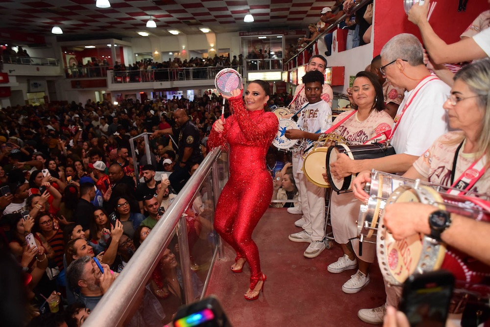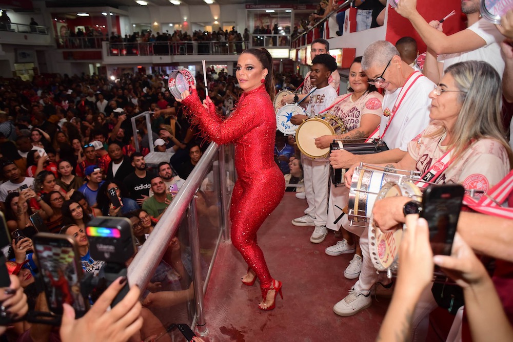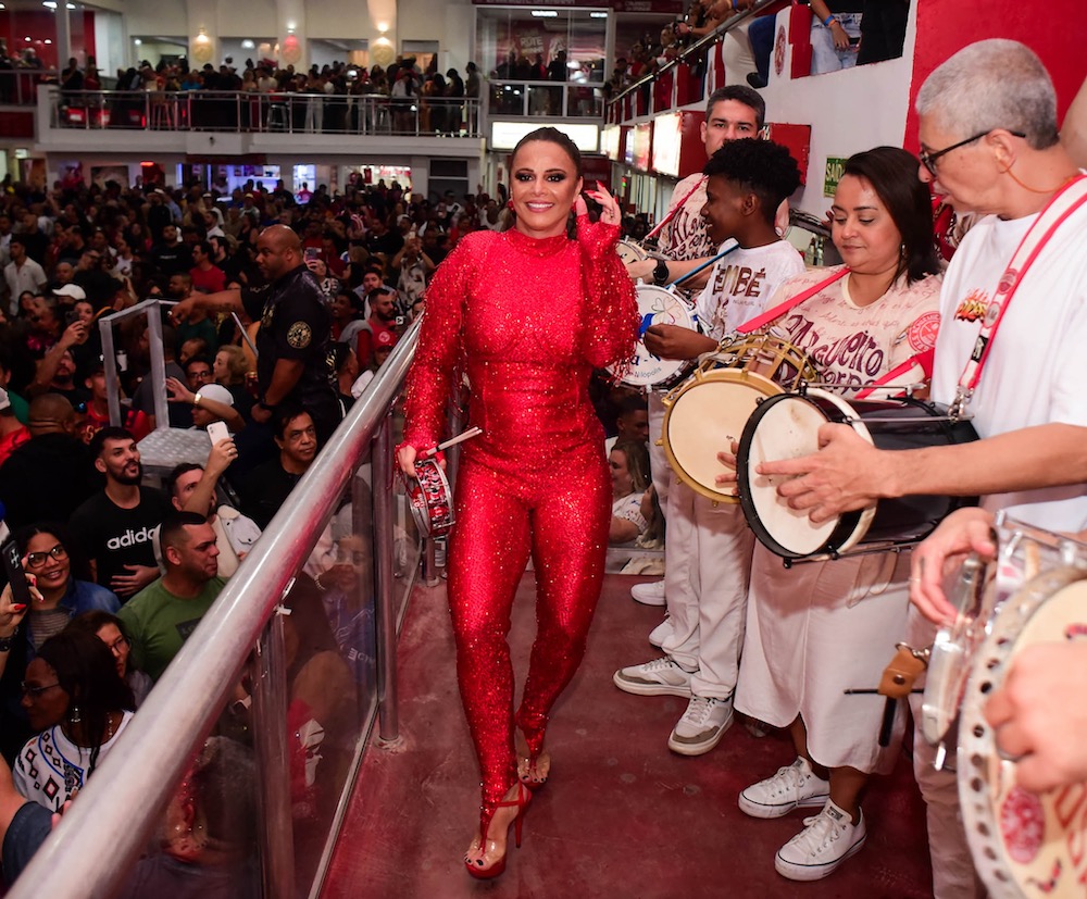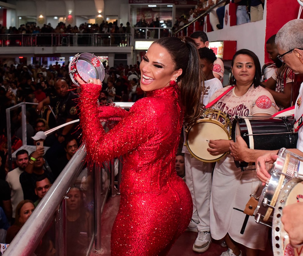 “Um novo ciclo se iniciando… como eu estava com saudade de tudo isso”, escreveu Viviane na legenda da publicação. Ela apostou num macacão todo vermelho com direito a muito brilho. Cabelo preso, brincos e sandália da mesma cor completaram o visual da realeza da agremiação.