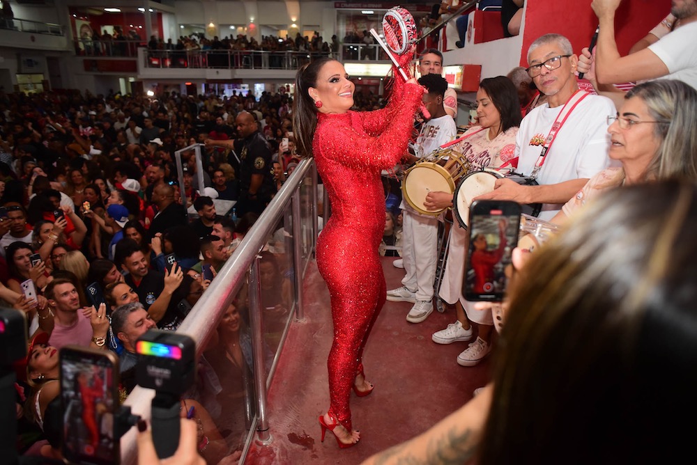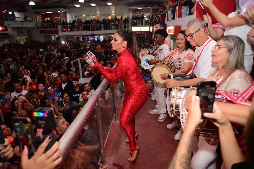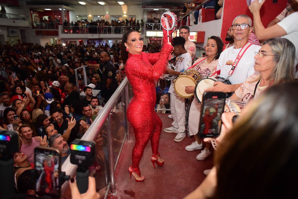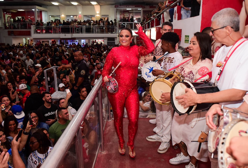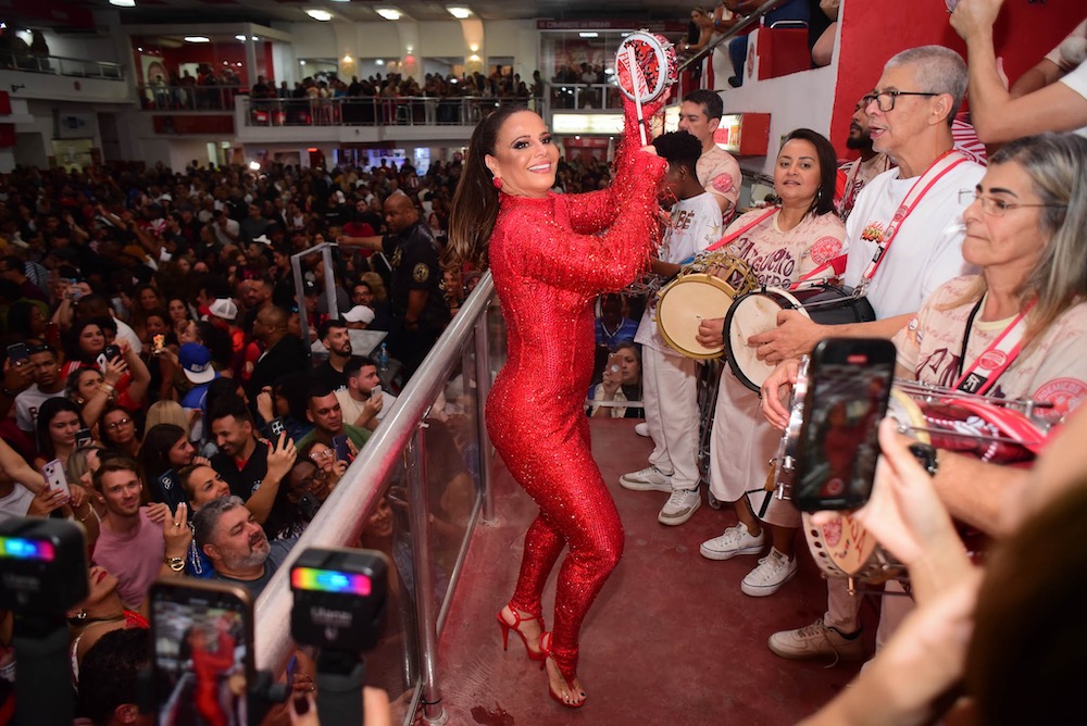 “Um novo ciclo se iniciando… como eu estava com saudade de tudo isso”, escreveu Viviane na legenda da publicação. Ela apostou num macacão todo vermelho com direito a muito brilho. Cabelo preso, brincos e sandália da mesma cor completaram o visual da realeza da agremiação.