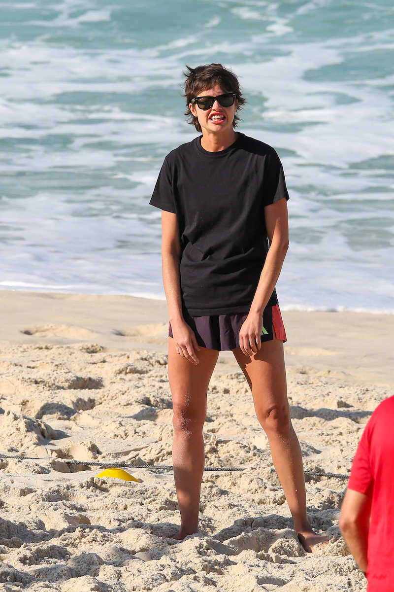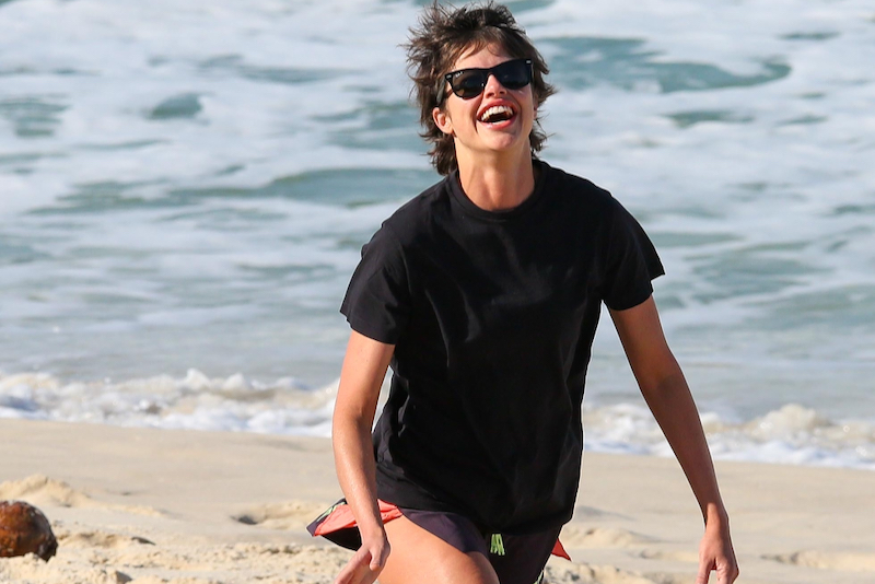 Na ocasião, o ator usou um short e camisa amarela. No entanto, resolveu ficar mais a vontade e tirou a parte de cima da roupa, deixando o corpo sarado à mostra. Já a atriz vestiu uma camisa preta e short colorido. Recentemente ela mudou radicalmente o visual para interpretar Luma, personagem da próxima novela das nove, da TV Globo, “Mania de Você”. Ela deu adeus ao cabelo longo e adotou o cabelo bem curtinho.