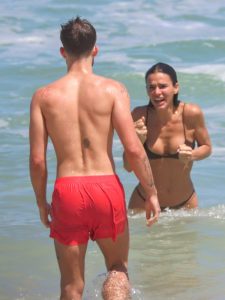 Eles aproveitaram a alta temperatura deste sábado (25) para se divertirem na praia de São Conrado, na Zona Sul do Rio. Bruna Marquezine e João Guilherme foram foram vistos em clima de descontração. Em fevereiro deste ano, foi noticiado que o romance entre eles havia acabado. Contudo, desde então, os dois são vistos juntos em diversas situações. Eles conversaram, brincaram à beira-mar e se refrescaram num mergulho.