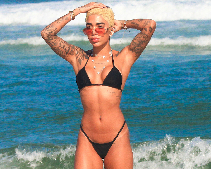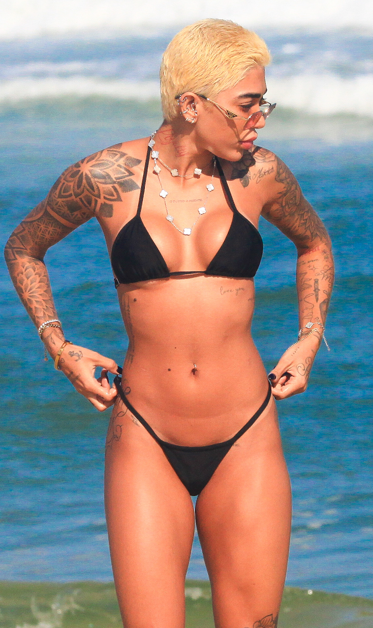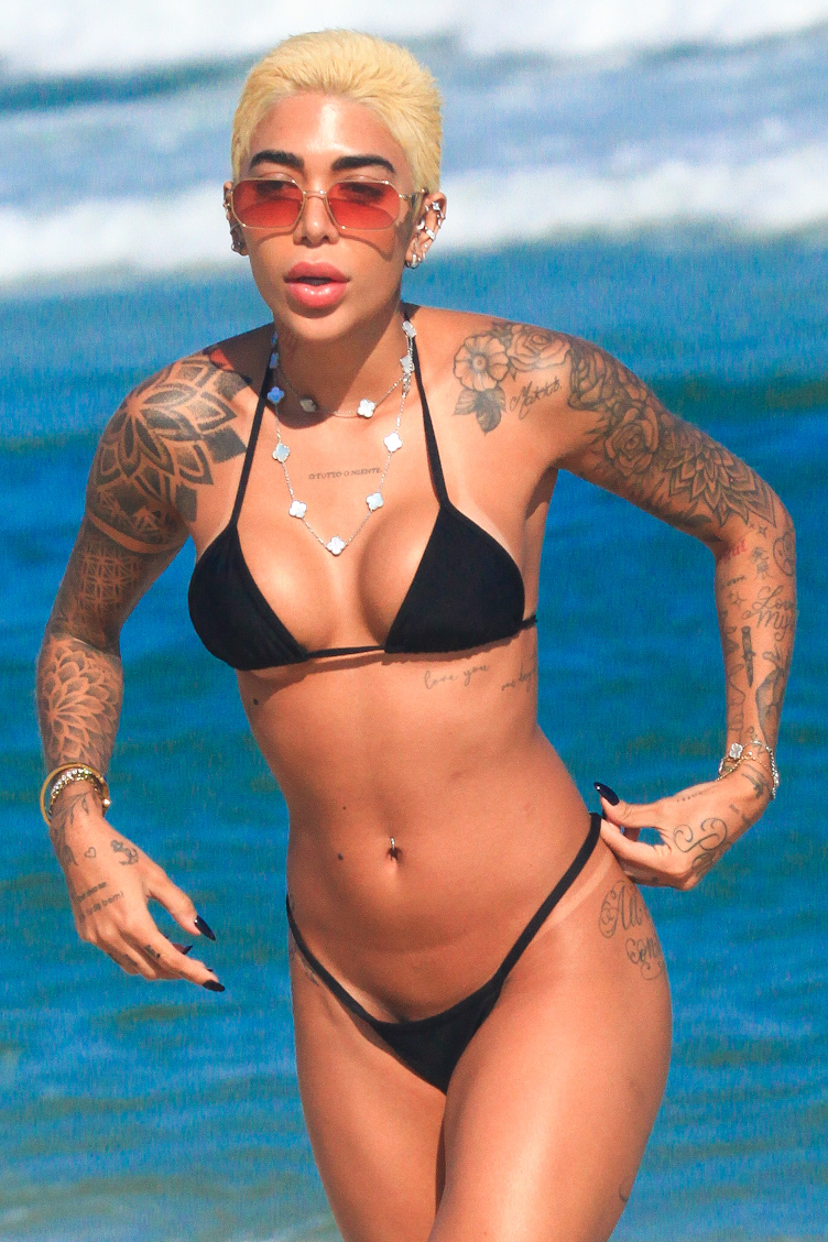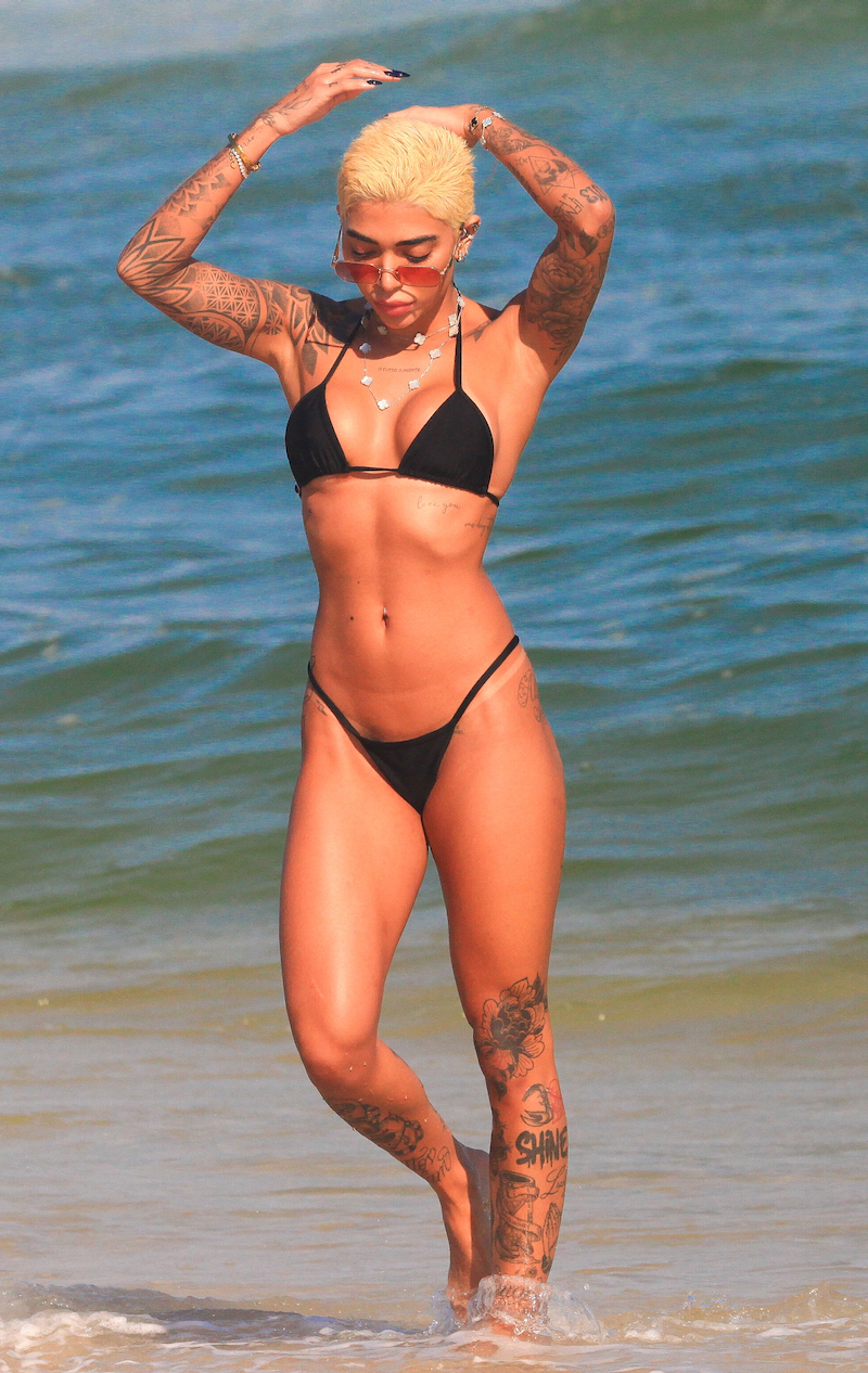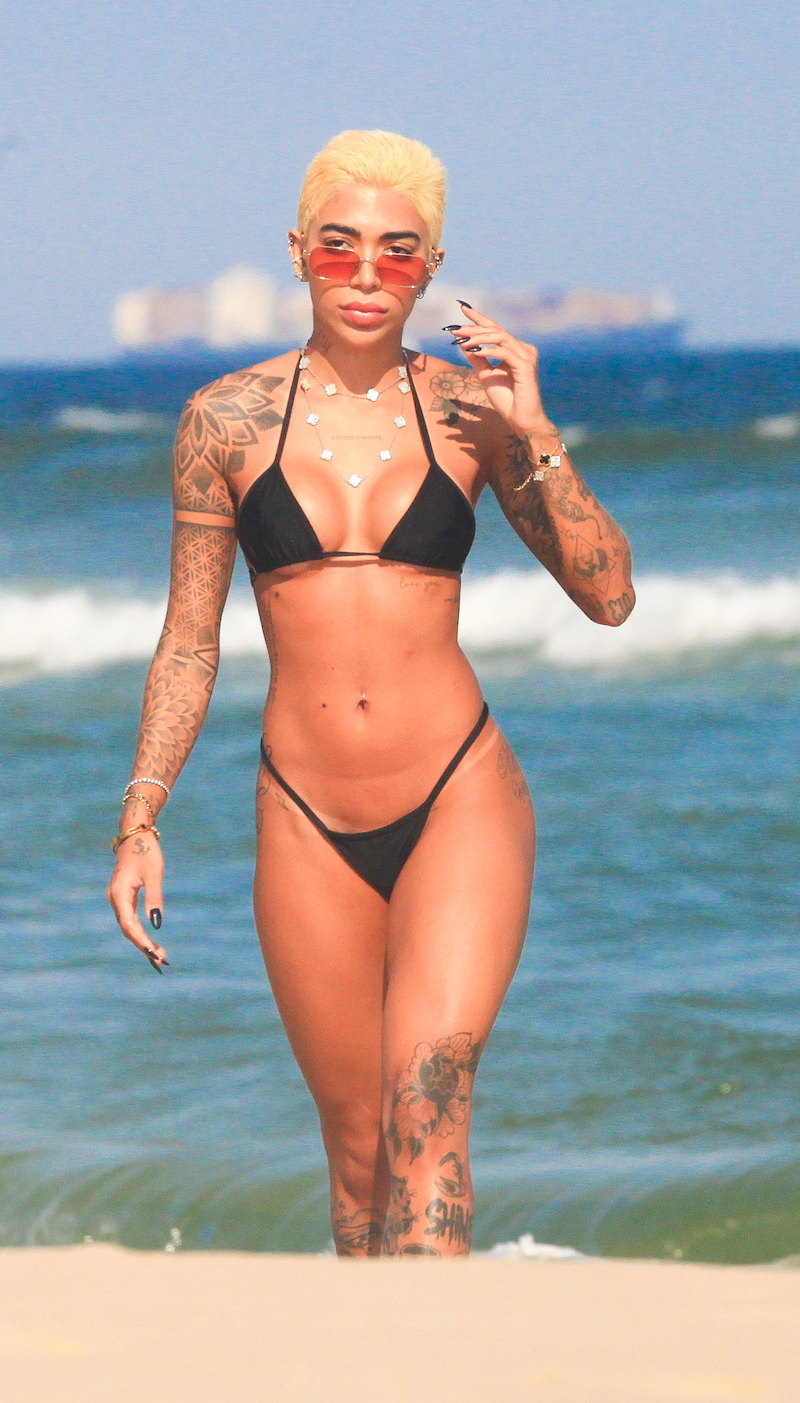 Dhiovanna Barbosa, irmã de Gabigol, visual novo loiríssima de cabelo curto na praia da Barra da Tijuca Rio