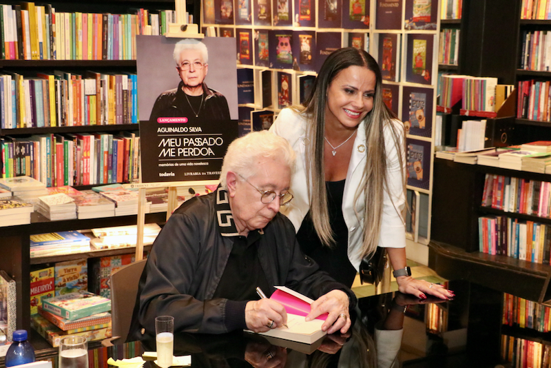 Aguinaldo Silva, de 81 anos, recebeu o carinho de várias estrelas no lançamento de seu livro, “Meu passado me perdoa: Memórias de uma vida novelesca”, escrito por Nilson Xavier, em uma livraria da Zona Sul do Rio, nesta quinta-feira (18). Susana Vieira, Betty Faria, Viviane Araújo, Bárbara Borges, Roberto Birindelli, Josie Pessoa foram algumas das celebridades que prestigiaram o famoso autor de novelas no local, além da autora Glória Perez.