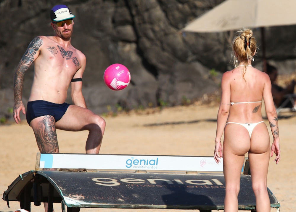 O casal reatou o namoro recentemente e viajou para Noronha para curtir a reconciliação e as festividades de fim de ano. Desde cedo, Leo e Karoline aproveitaram o dia sob sol forte, cercados por paisagem exuberante e mar marcante. Além disso, eles chamaram atenção ao se divertir com uma partida de futmesa na areia, prática que ganhou espaço entre turistas e atletas.