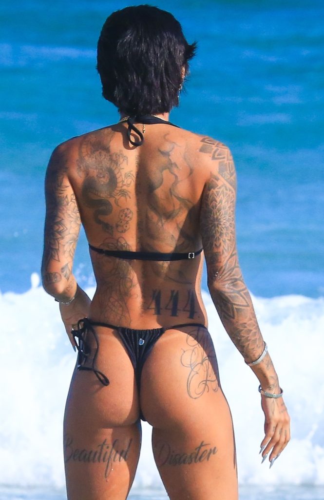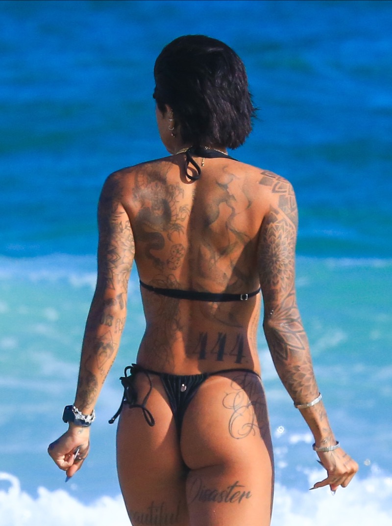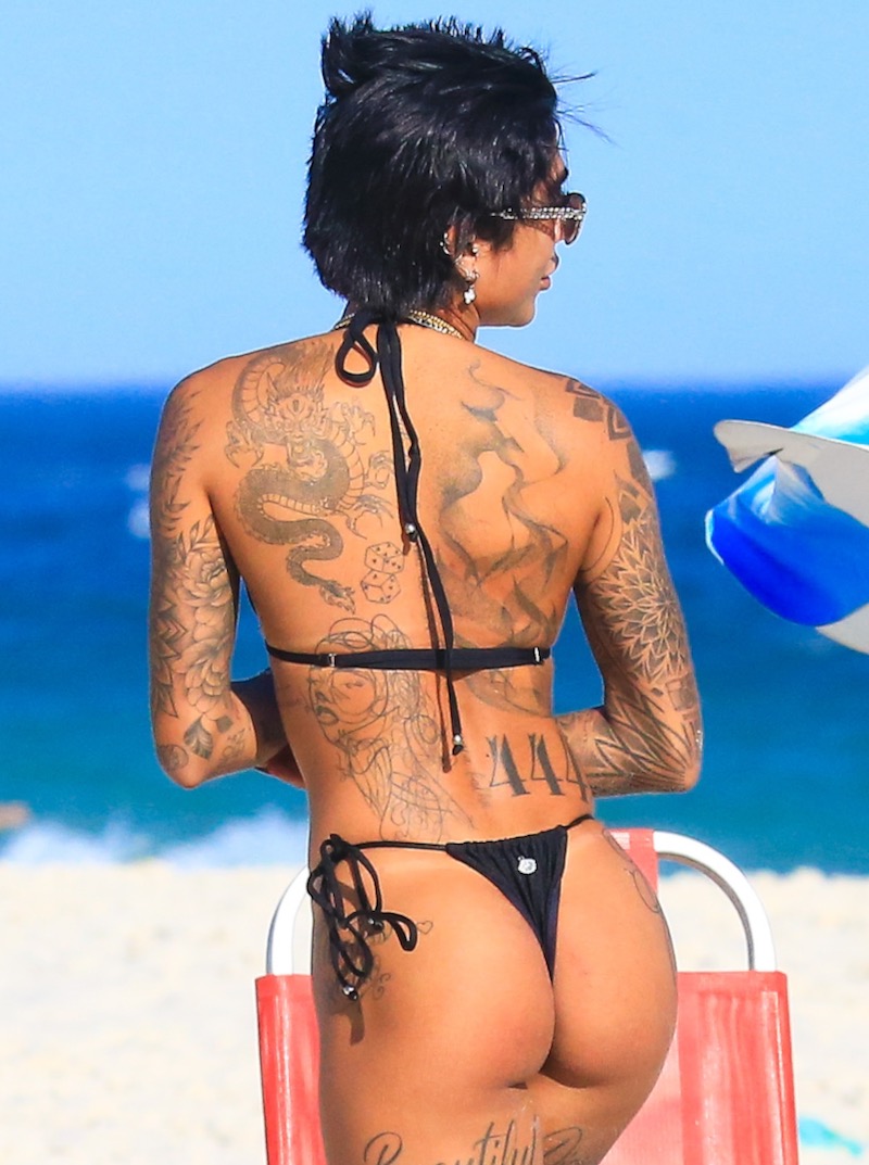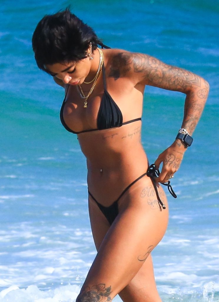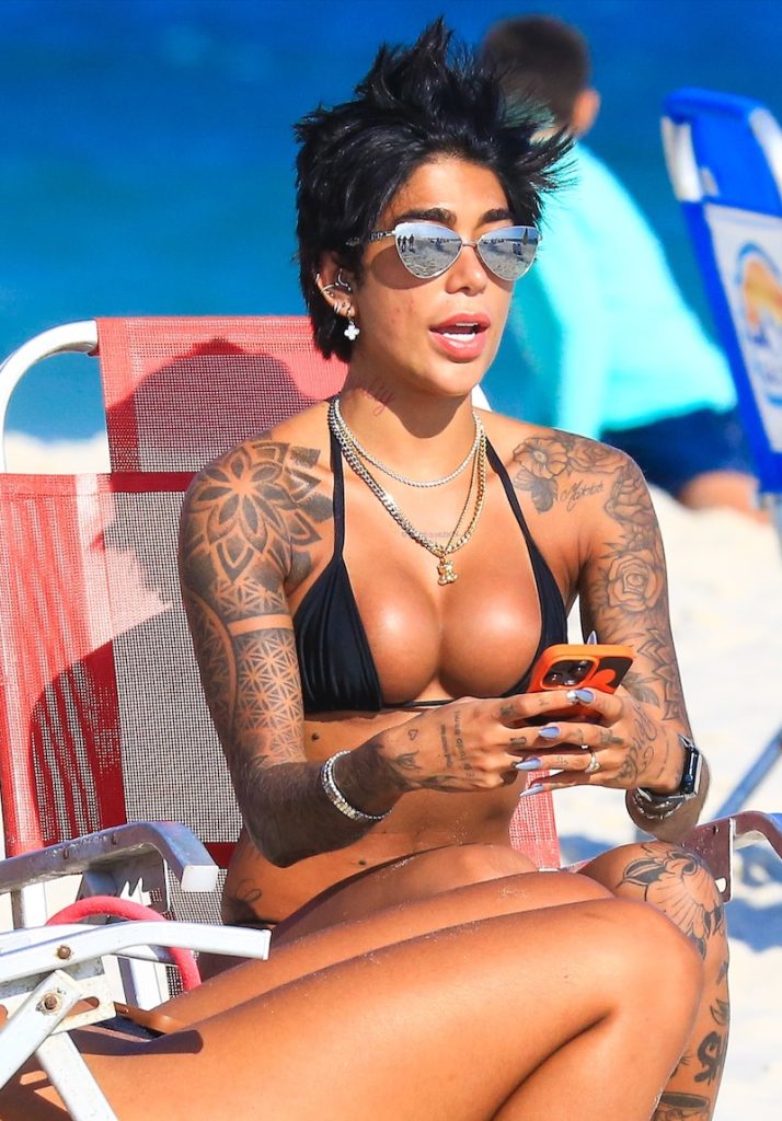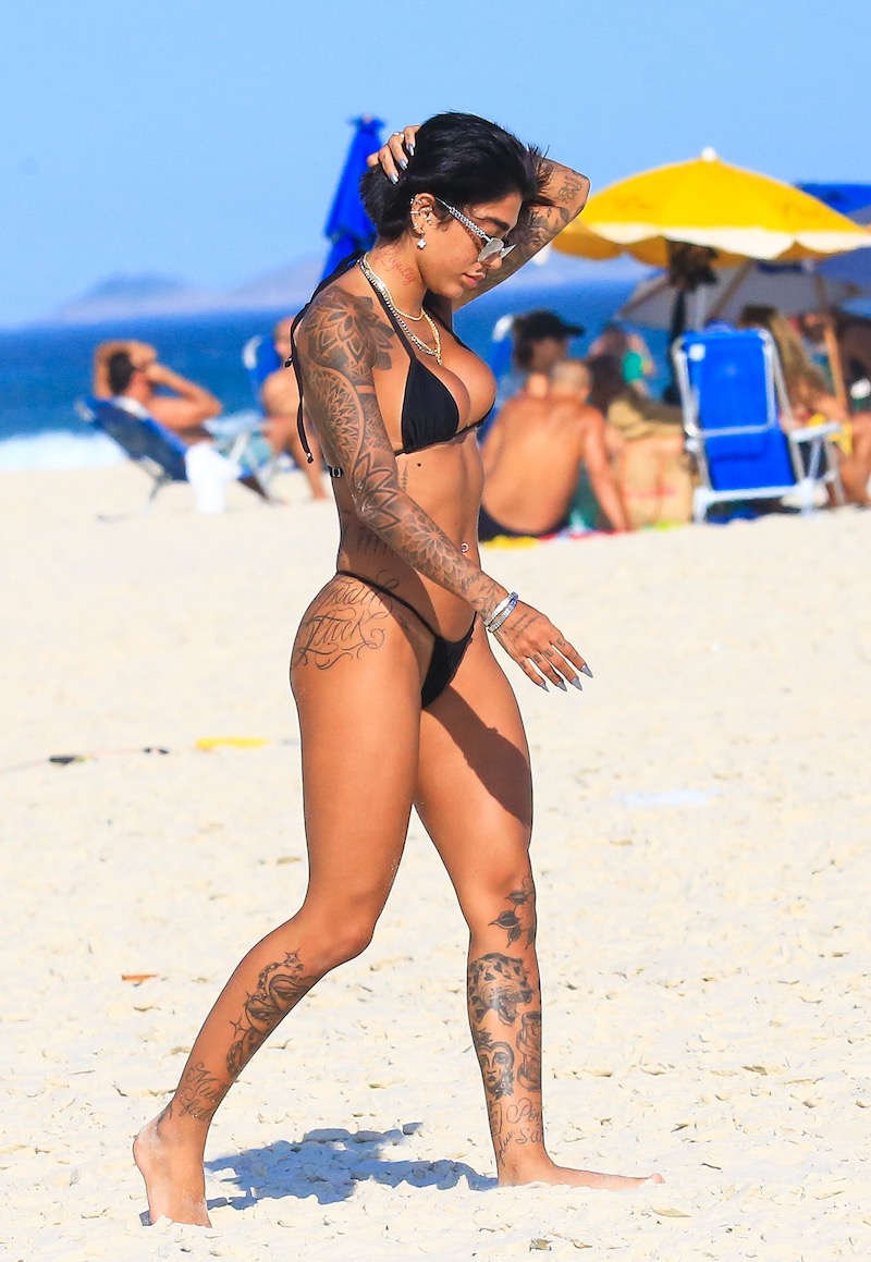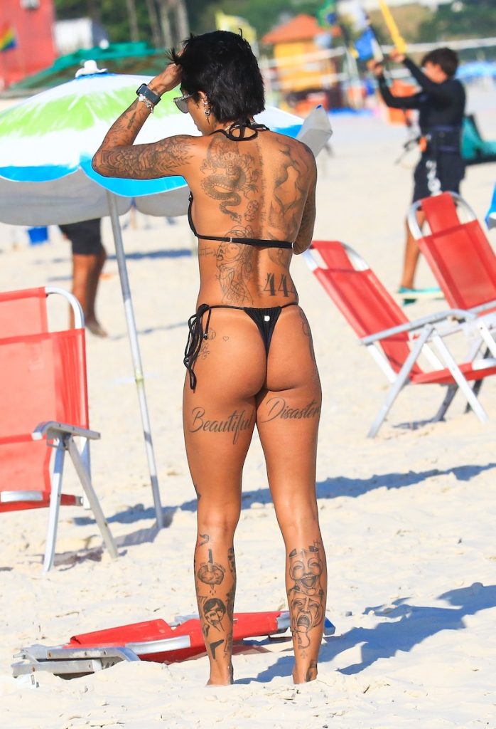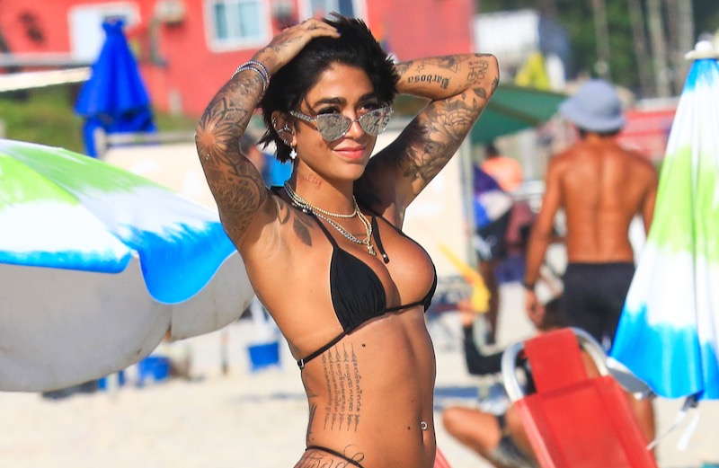 Dhiovanna Barbosa, irmã do jogador de futebol Gabigol, aproveitou o forte calor que fez no Rio de Janeiro nesta quinta-feira para curtir uma praia.