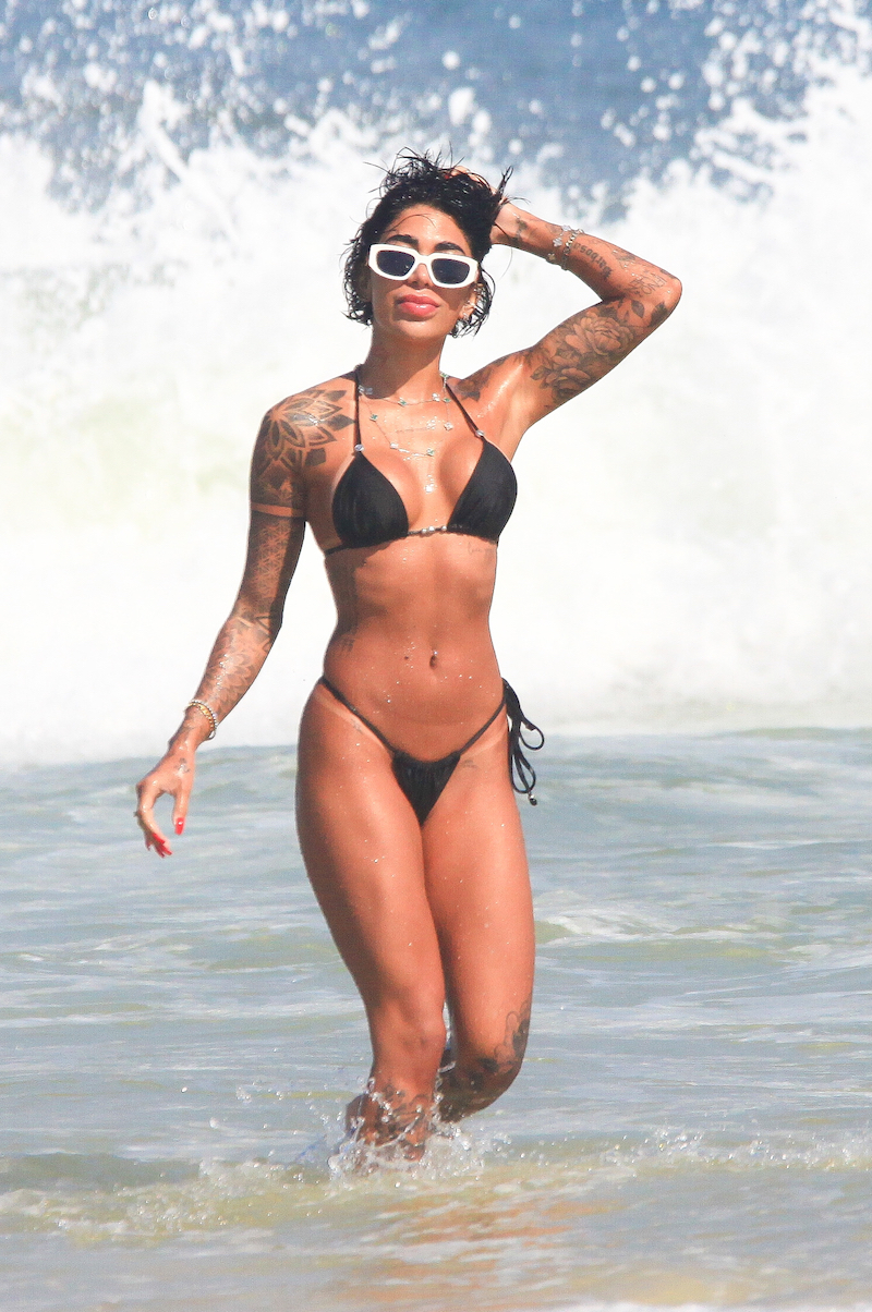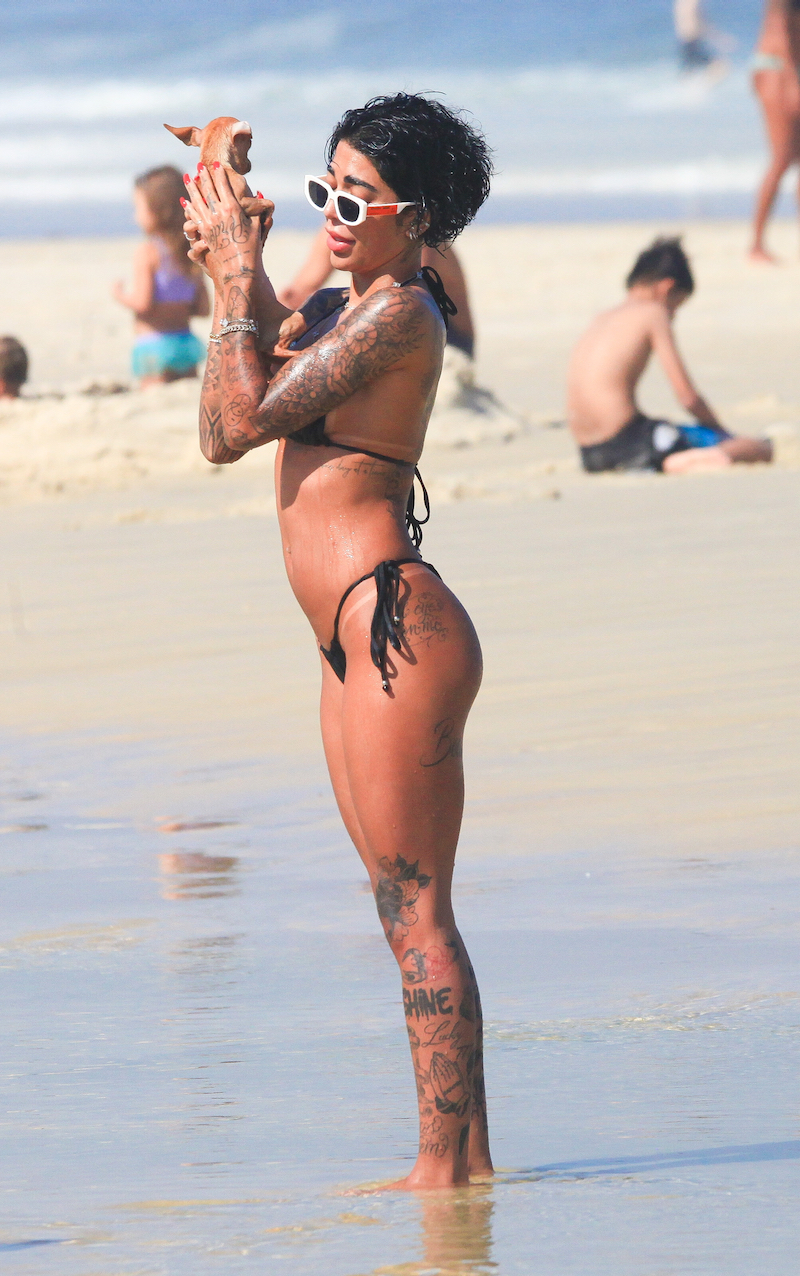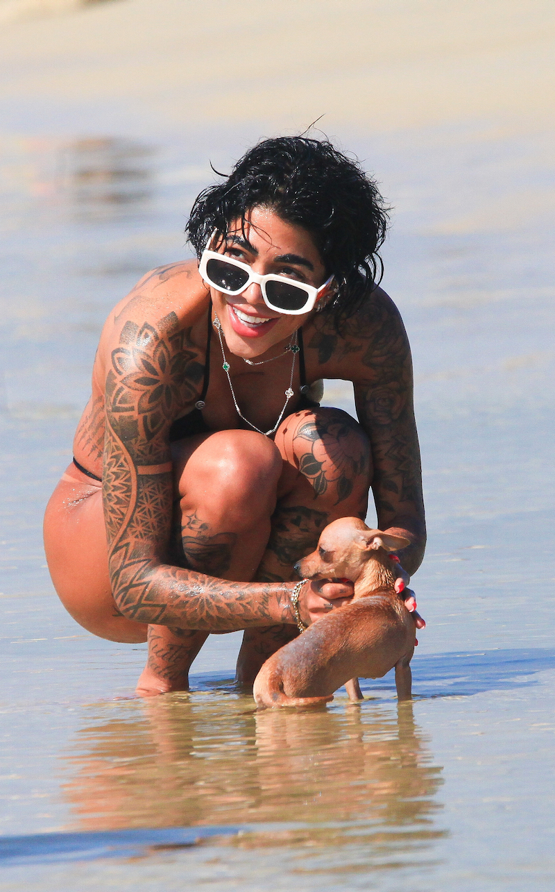 A Influenciadora e irmã do craque Gabriel Barbosa do Flamengo o “Gabi Gol”, aproveitou o dia de sol para renovar o bronseado, se refrescar no mar e brincar com um cãozinho.