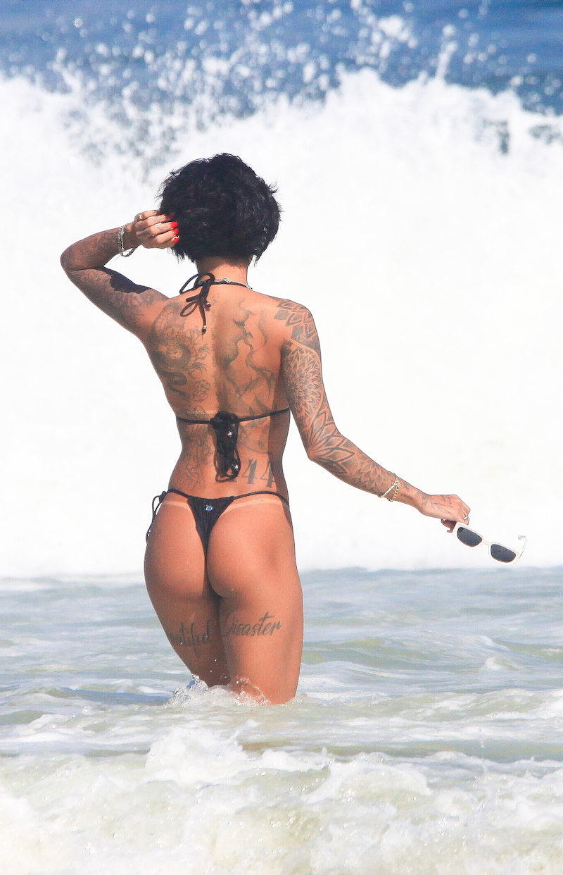 Dhiovanna Barbosa foi fotografada durante banho de mar na Praia da Barra da Tijuca, na Zona Oeste da capital, recentemente Dhiovanna radicalizou no corte do cabelo na nuca.