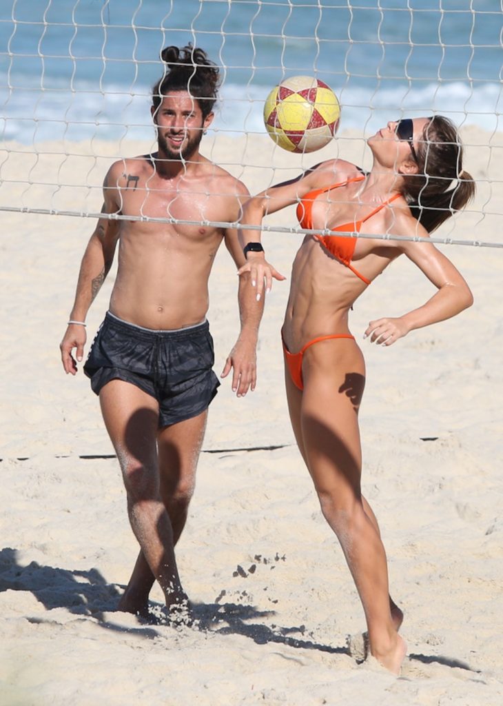 De biquíni laranja, Jade Picon ‘voa’ em treino de futevôlei na Barra da Tijuca, Zona Oeste da Cidade Maravilhosa.