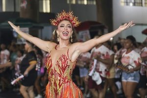 Juliana Paes brilha em ensaio de rua da Viradouro com simpatia