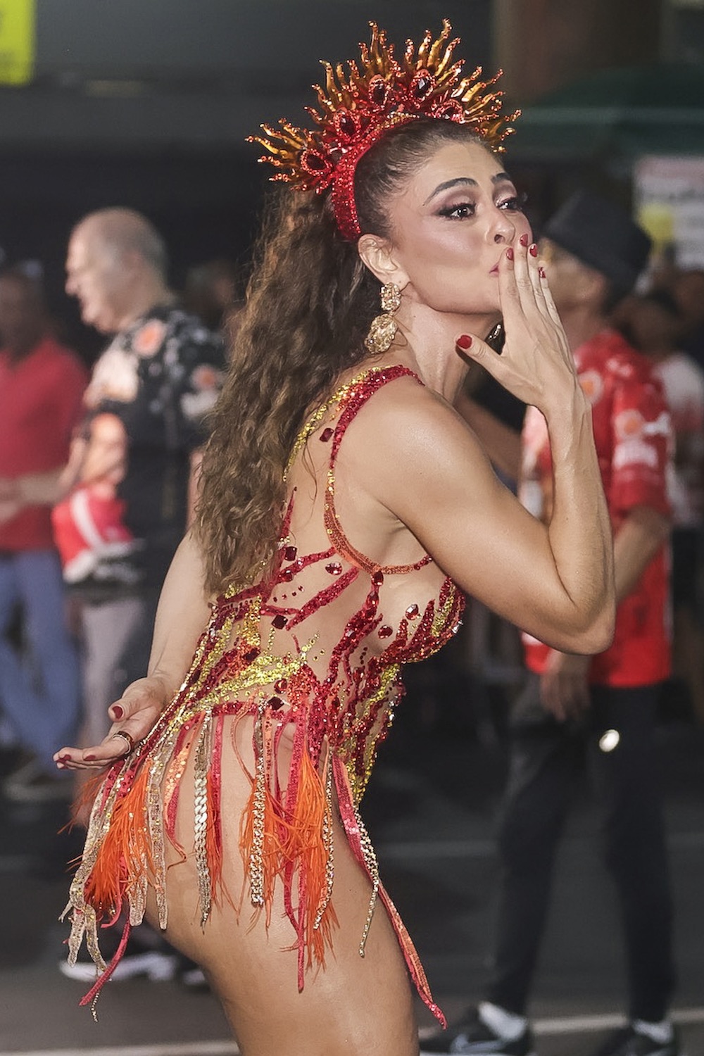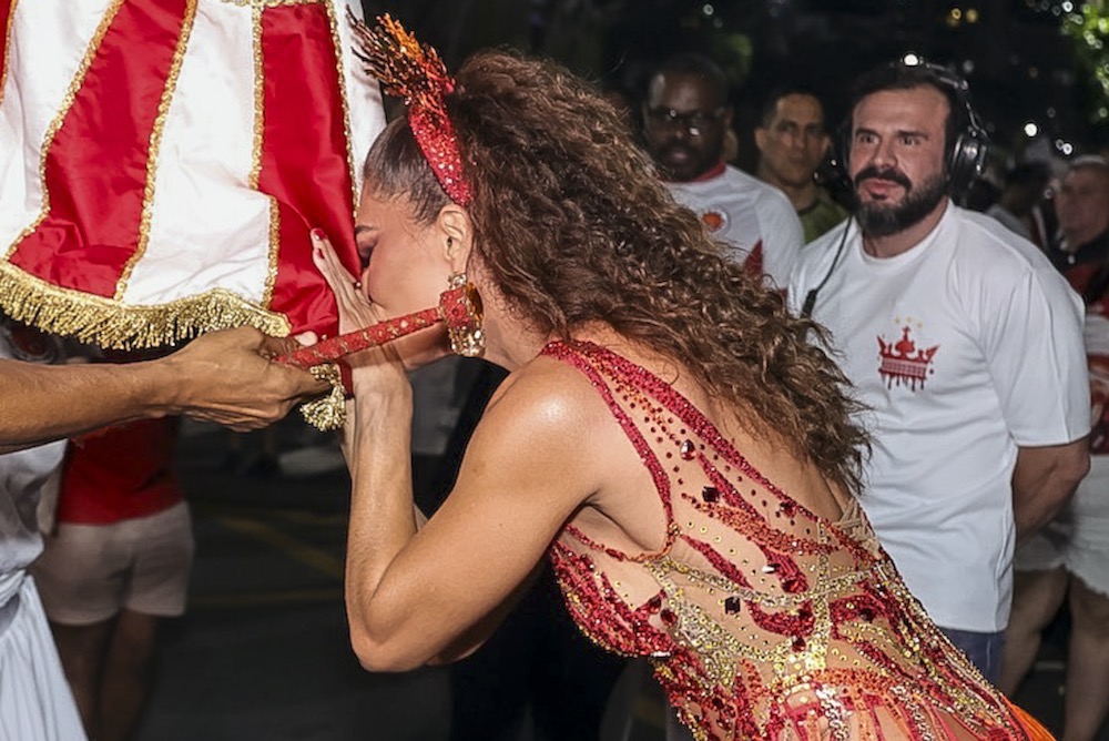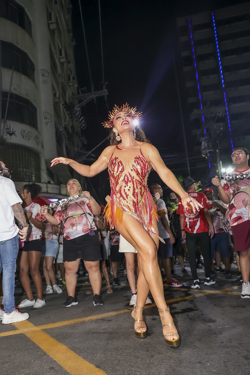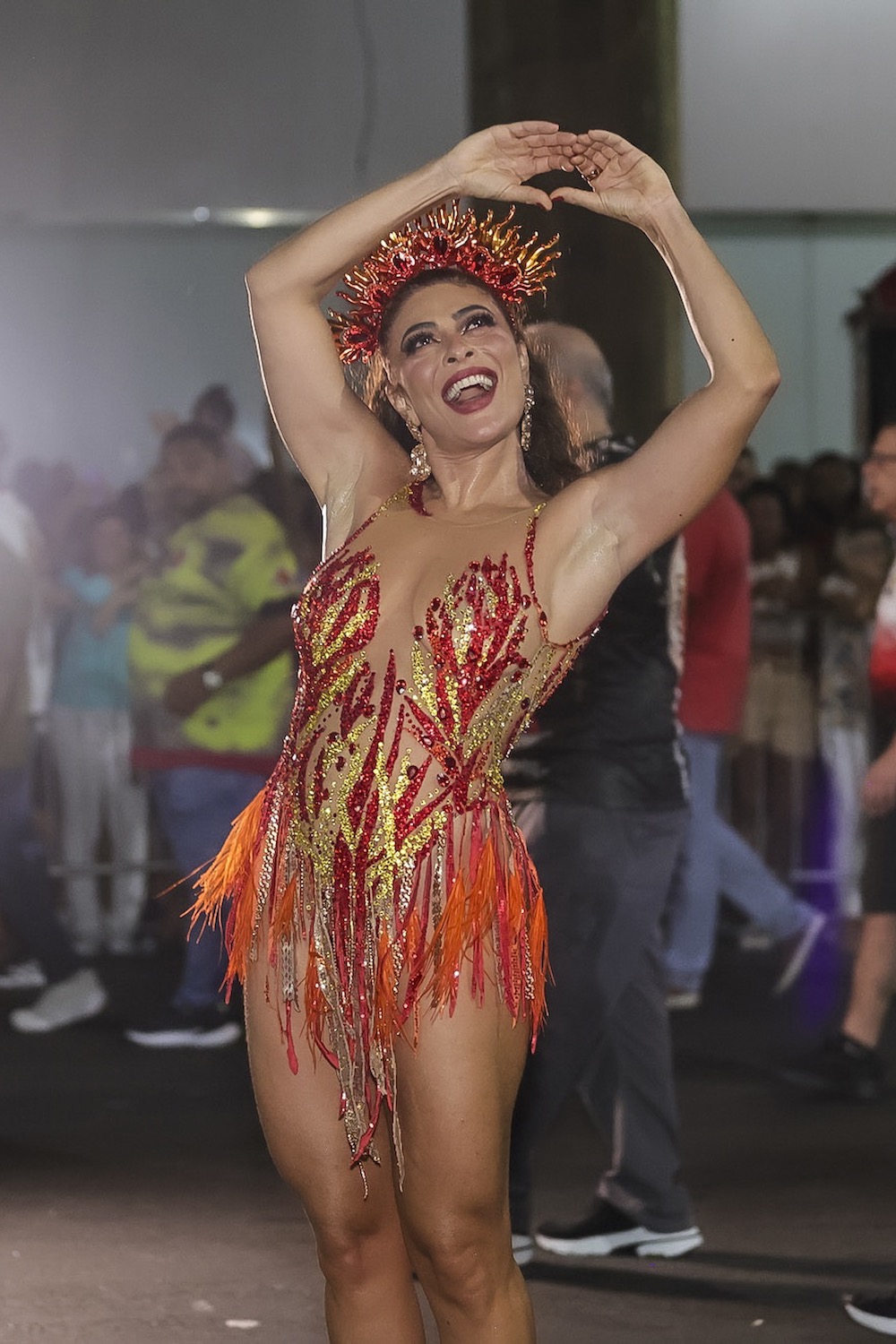 Juliana Paes brilha em ensaio de rua da Viradouro com simpatia