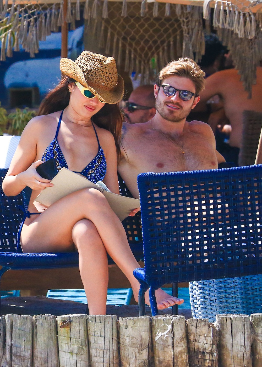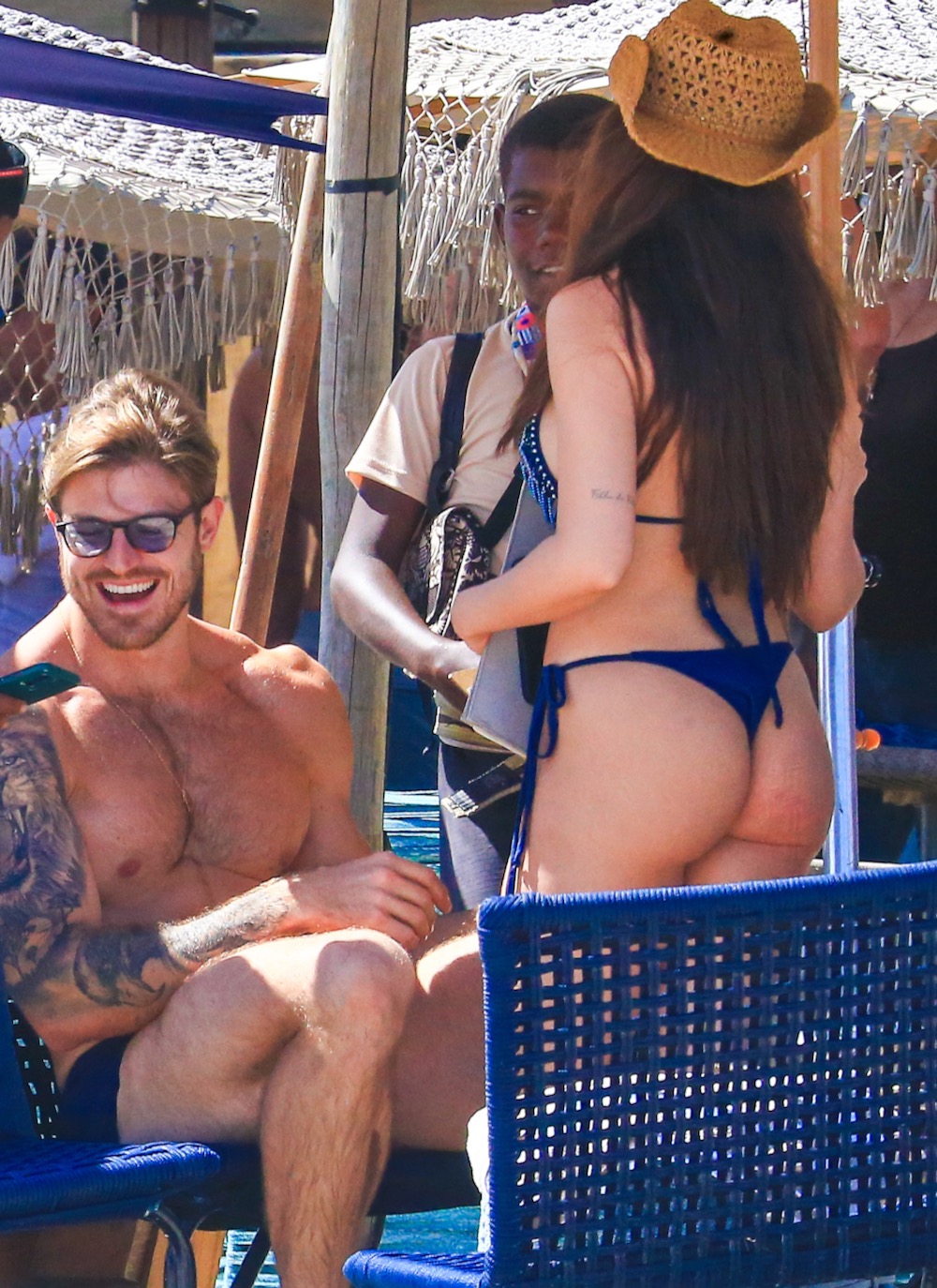 Ex BBB, foi vista neste domingo (30) ensolarado curtindo uma praia com namorado Kaique Cerveny