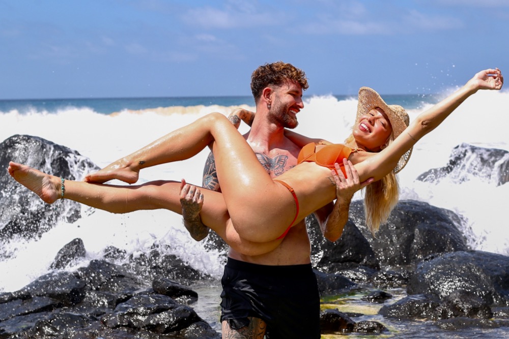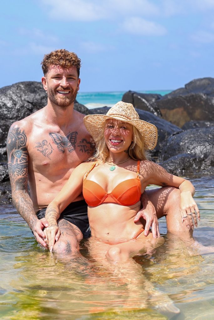 O ensaio na Praia do Bode foi registrado em clima de despedida, marcando o encerramento das férias do casal na ilha.