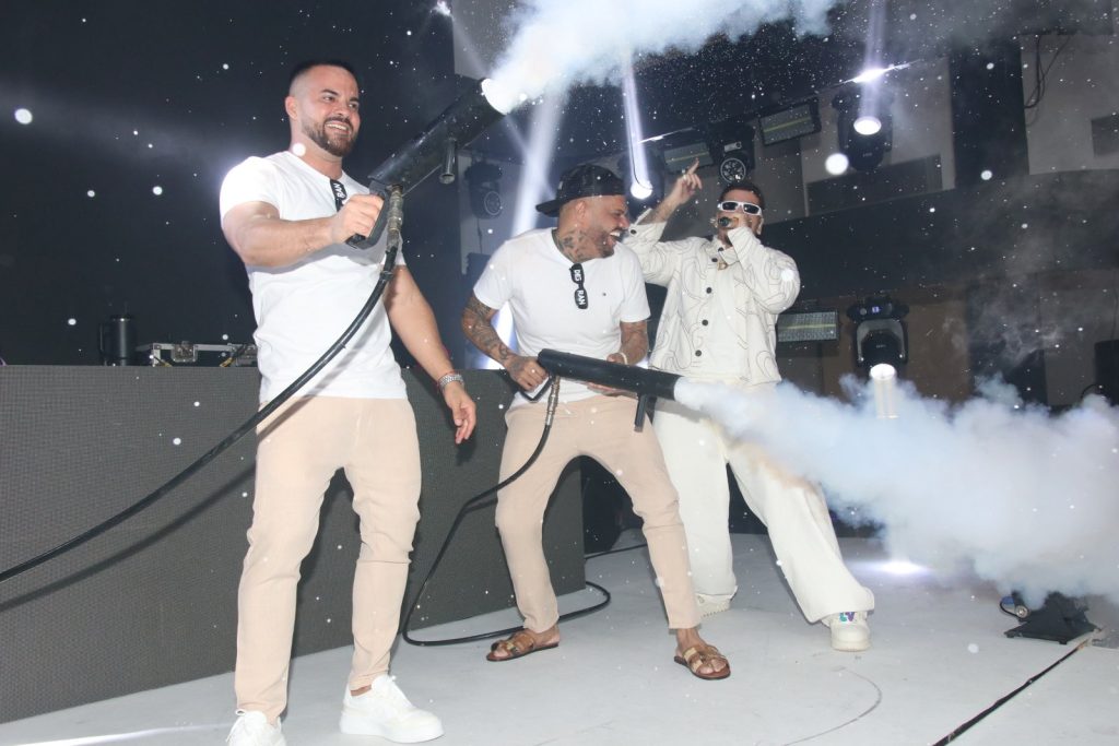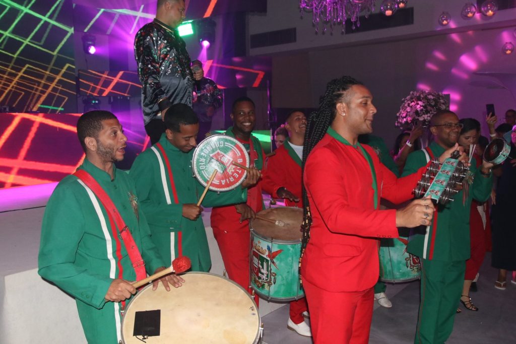 Finalizando a festa a estrondosa bateria da Escola de Samba Grande Rio cedida gentilmente pelo Presidente Helinho de Oliveira. Quem também esteve na festa foi: A Rainha de Bateria da Escola de Samba Porto da Pedra Andrea Andrade, o maquiador Marcelo Hicho, a empresária Josy Fernandes, Audrey Lundgren e o advogado(rei do habeas corpus) Leandro Barros.