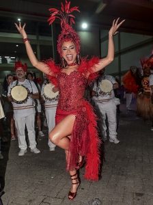 Lexa brilhou no mini desfile da Dragões da Real, em São Paulo, na madrugada de sábado (7). A cantora, que é madrinha de bateria da escola, elegeu um look monocromático vermelho e falou sobre a sua força e identificação com o enredo da agremiação.