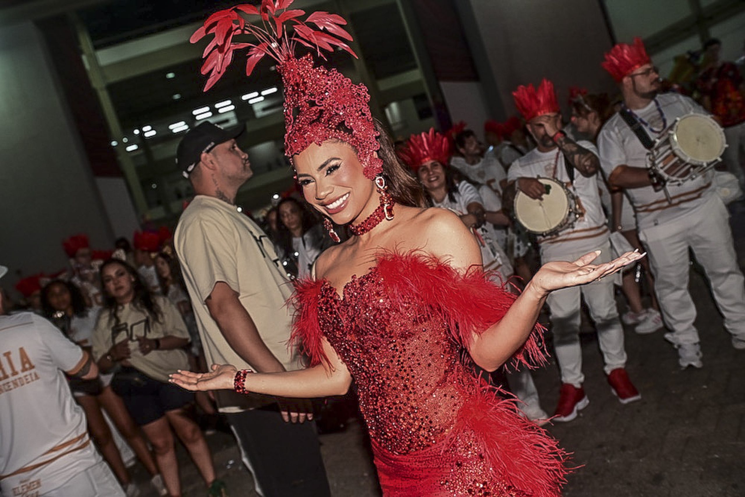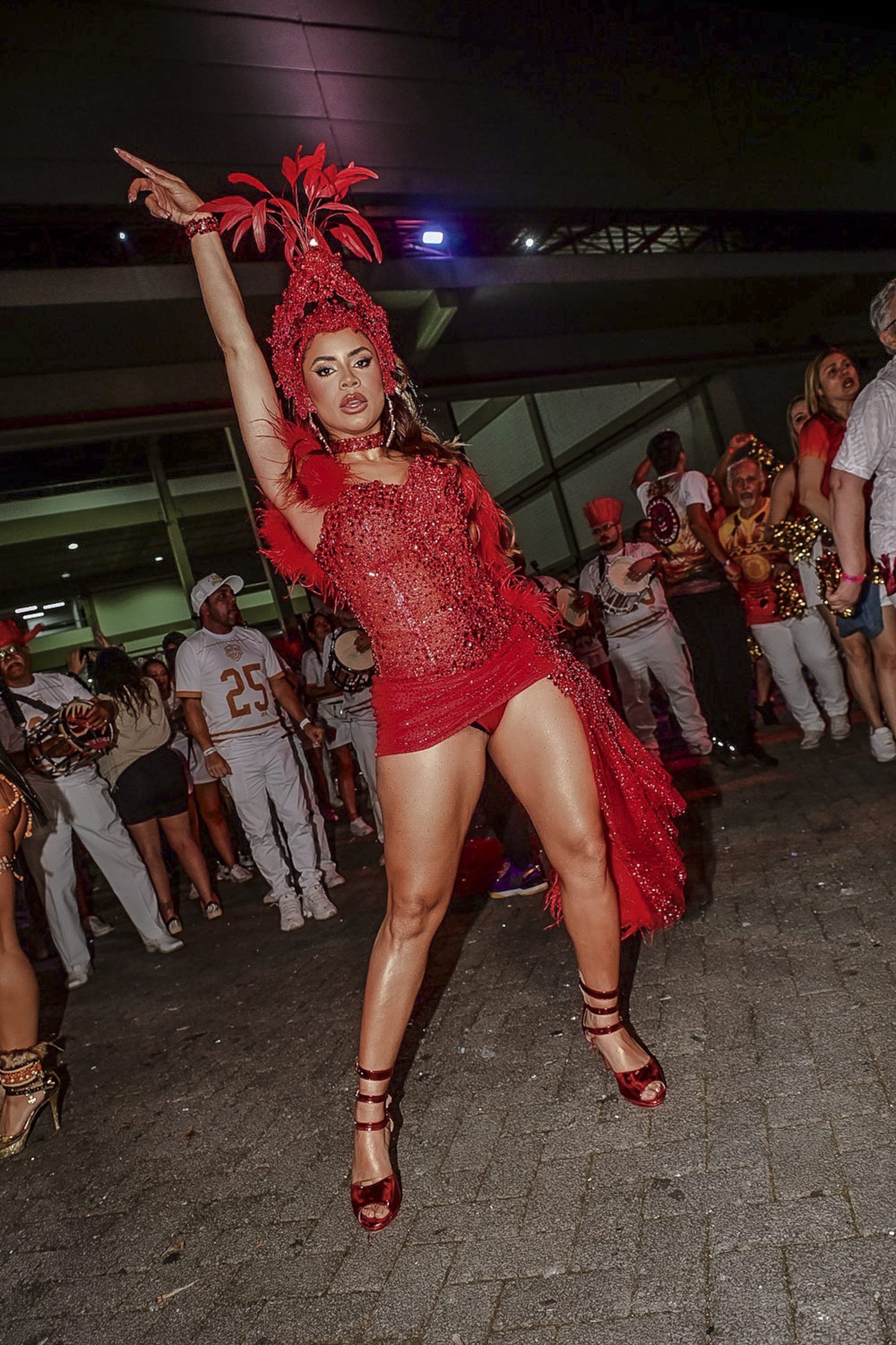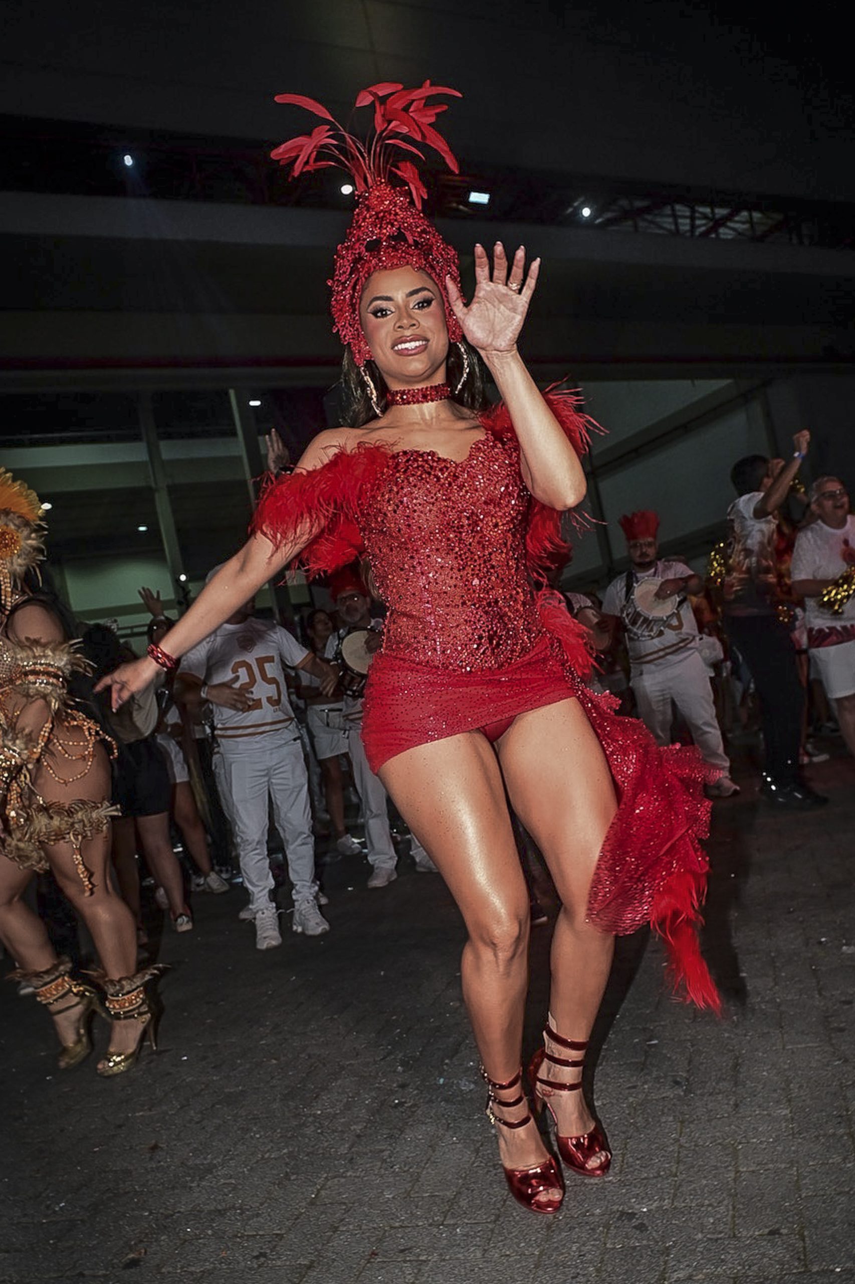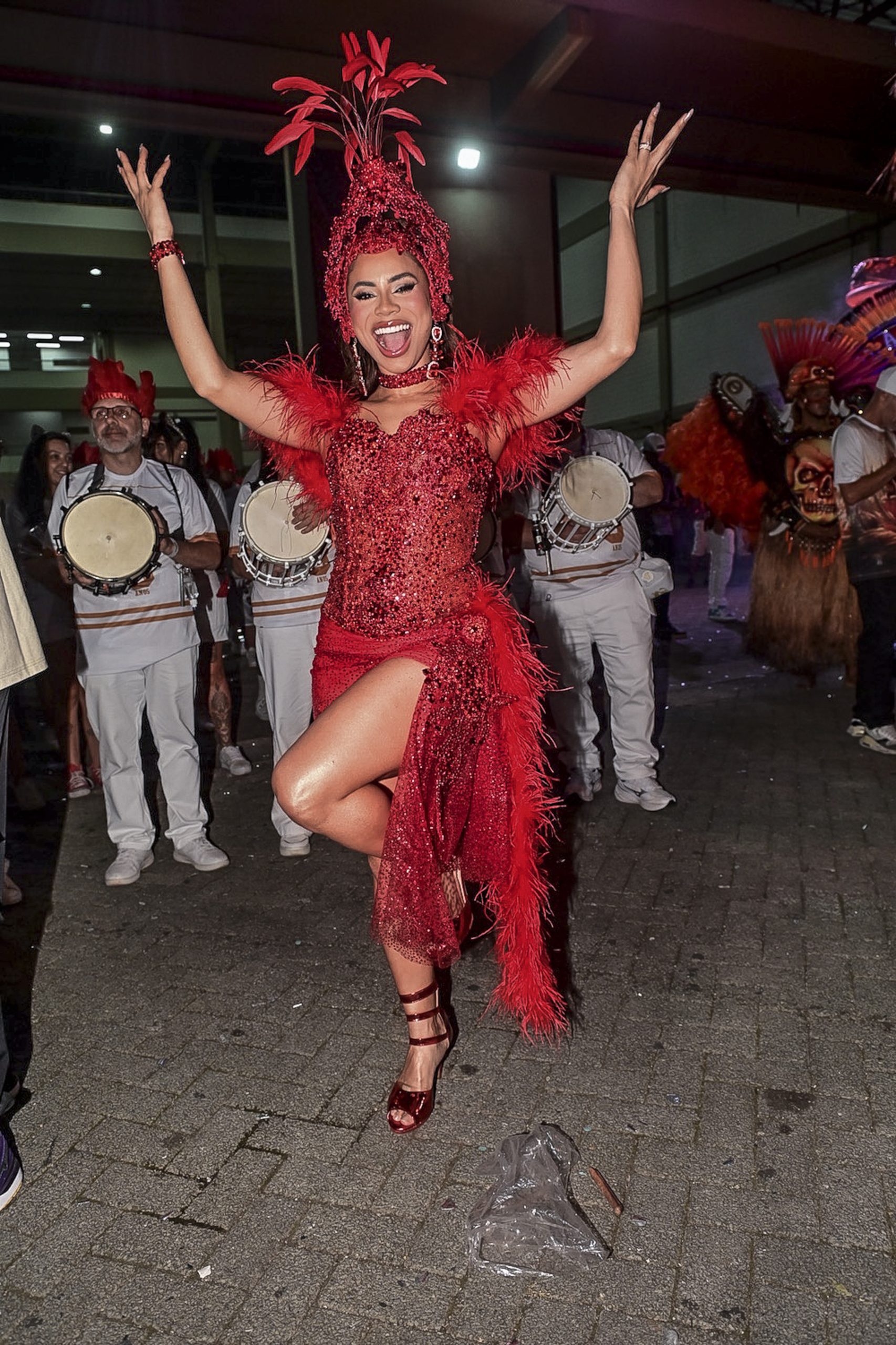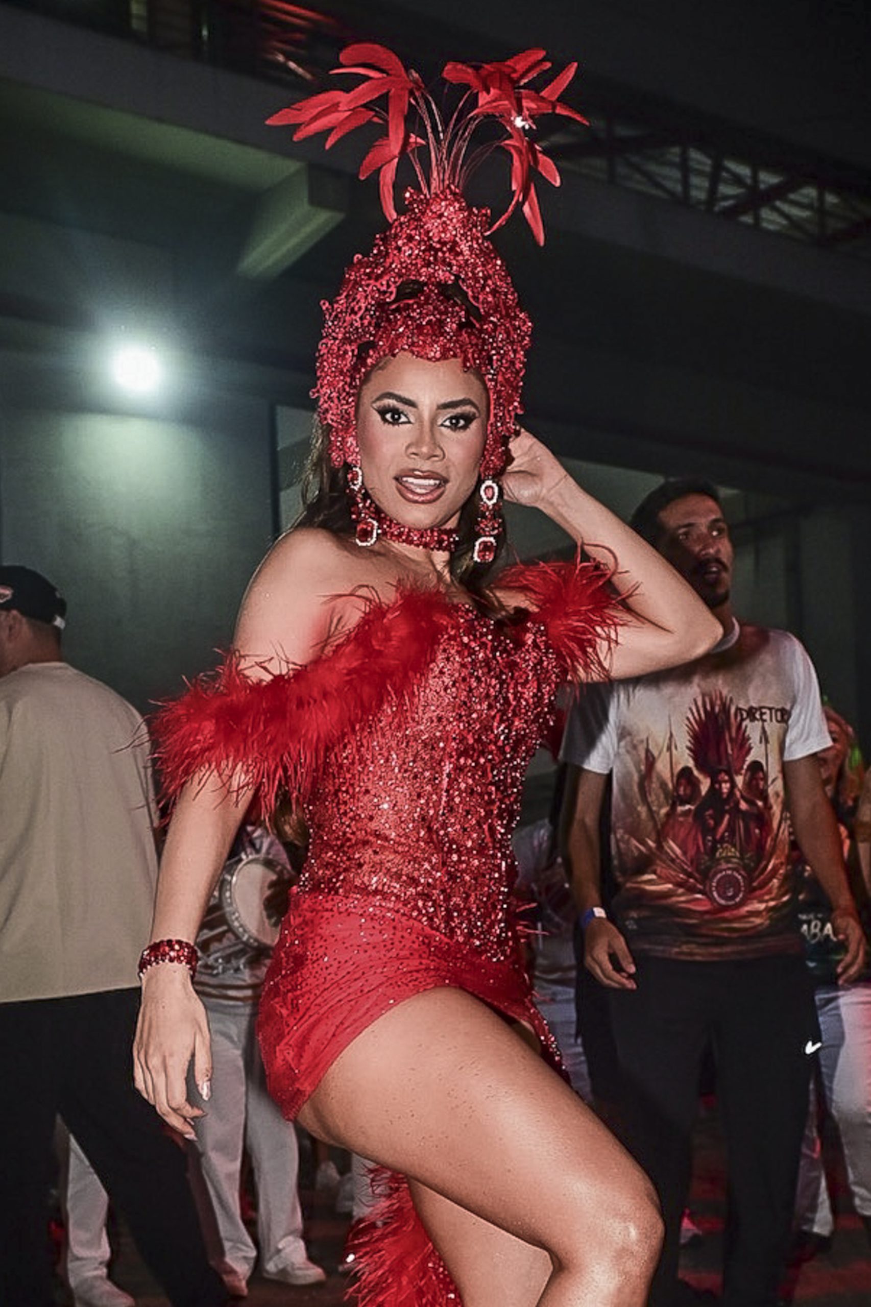 Lexa brilhou no mini desfile da Dragões da Real, em São Paulo, na madrugada de sábado (7). A cantora, que é madrinha de bateria da escola, elegeu um look monocromático vermelho e falou sobre a sua força e identificação com o enredo da agremiação.
