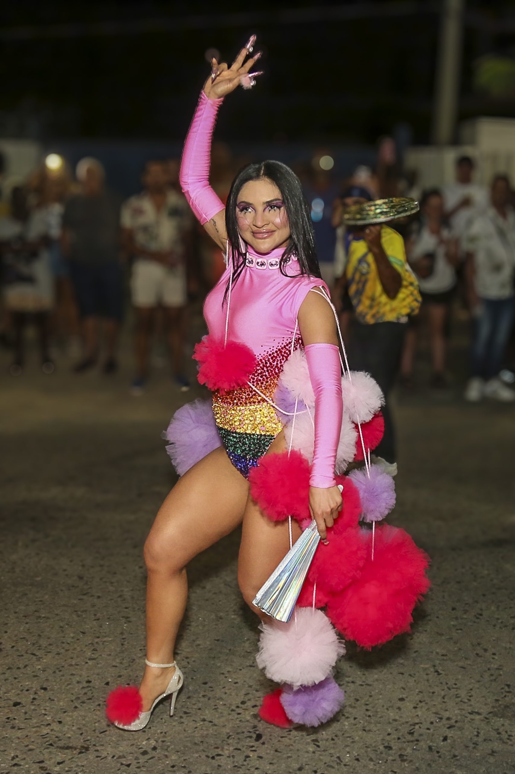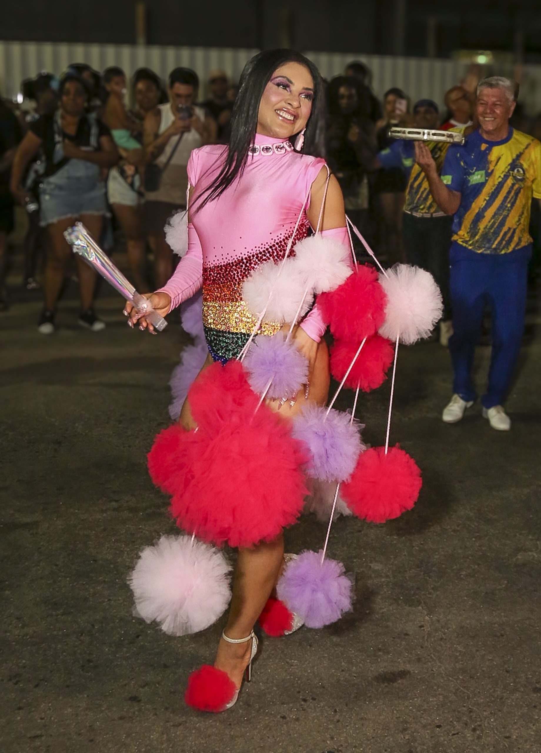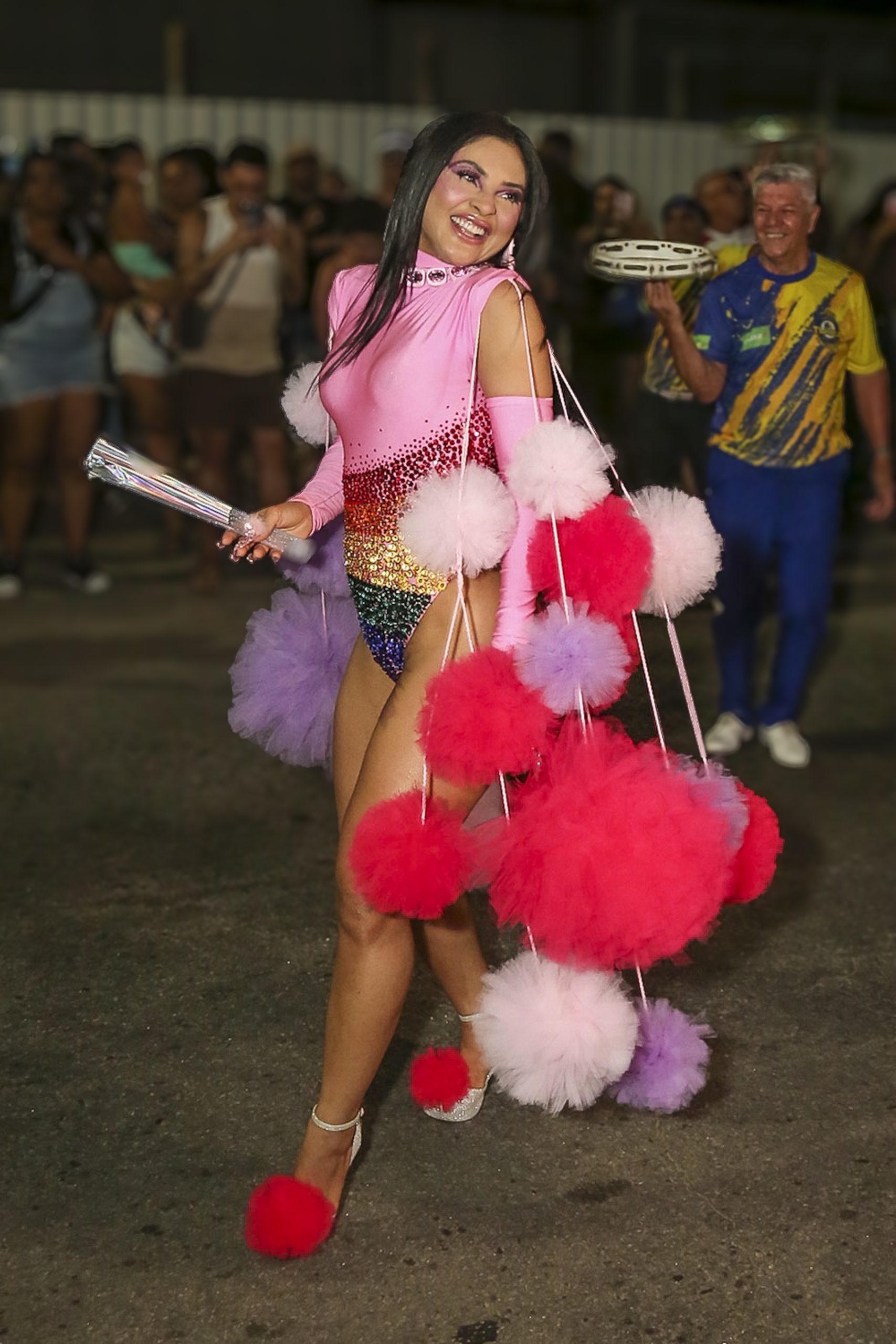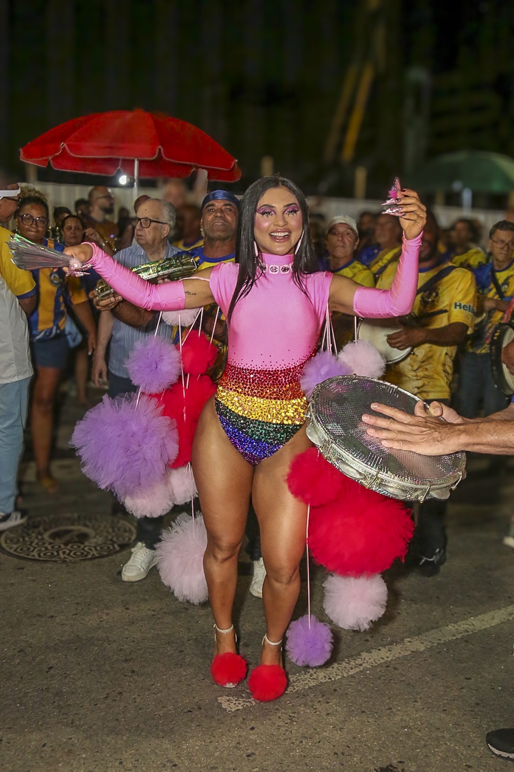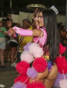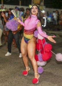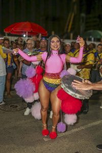A rainha de bateria celebrou com a comunidade do Borel seu último ensaio de rua deste ano