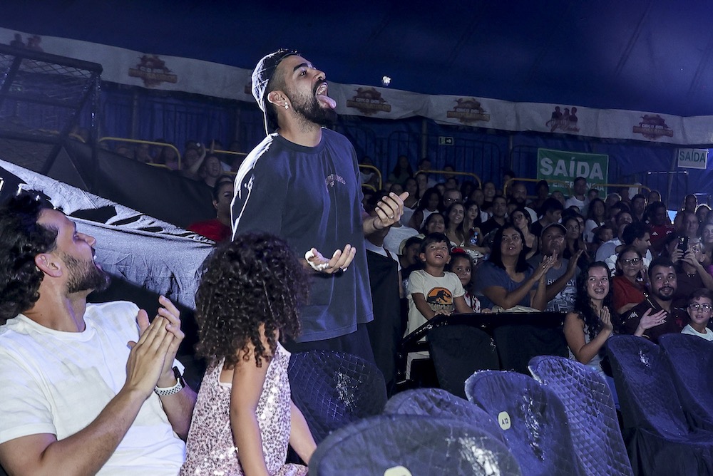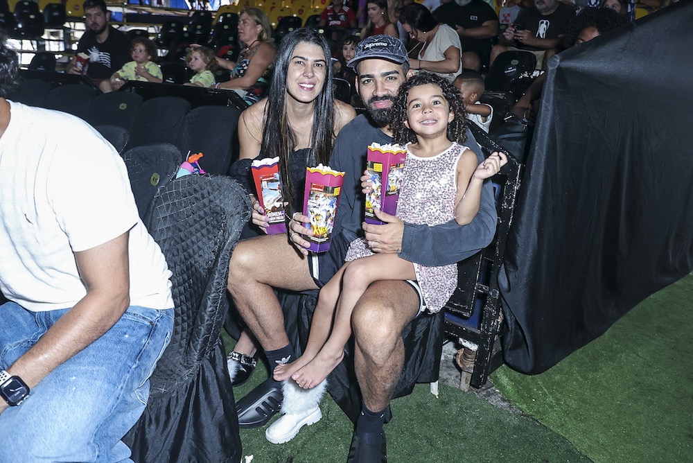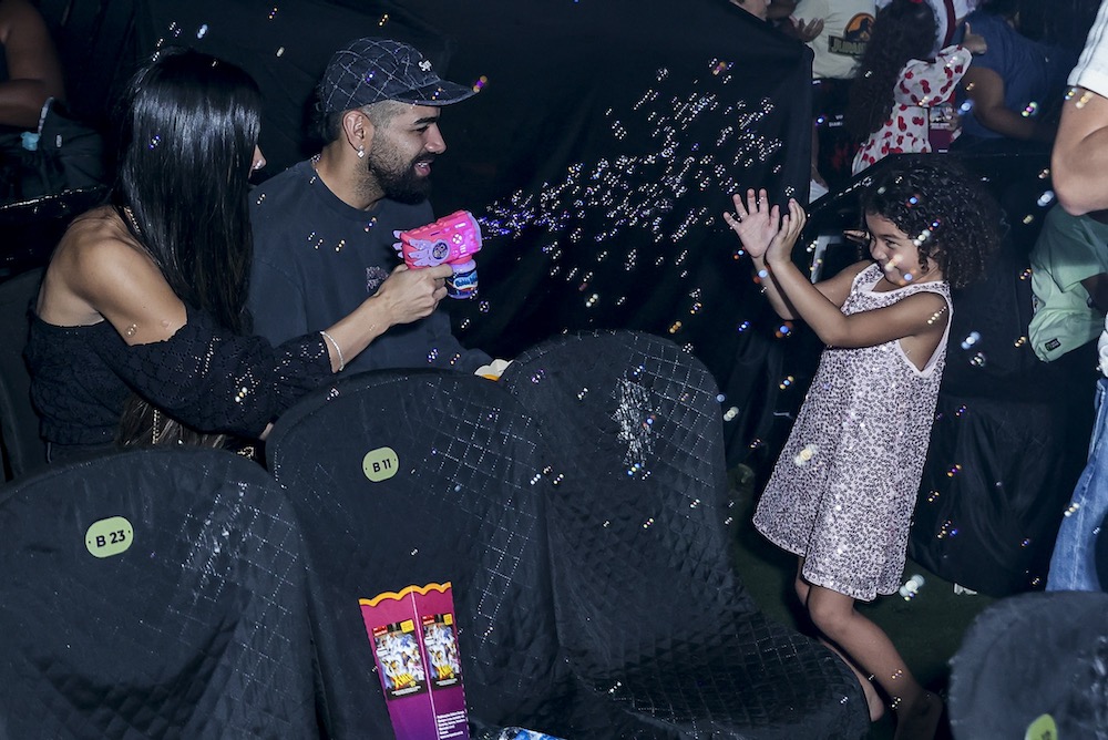 O artista estava acompanhado de sua esposa, Beatriz Ferraz, e da filha do casal, Bella (4 anos). Vale lembrar que a família cresceu recentemente: em fevereiro de 2025, nasceu Kadu, o segundo filho do casal.