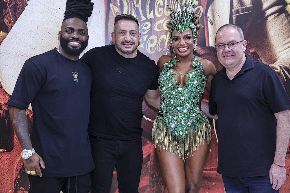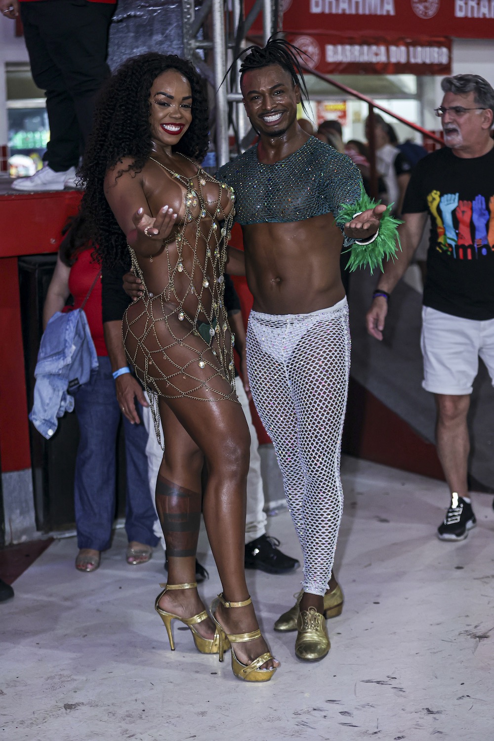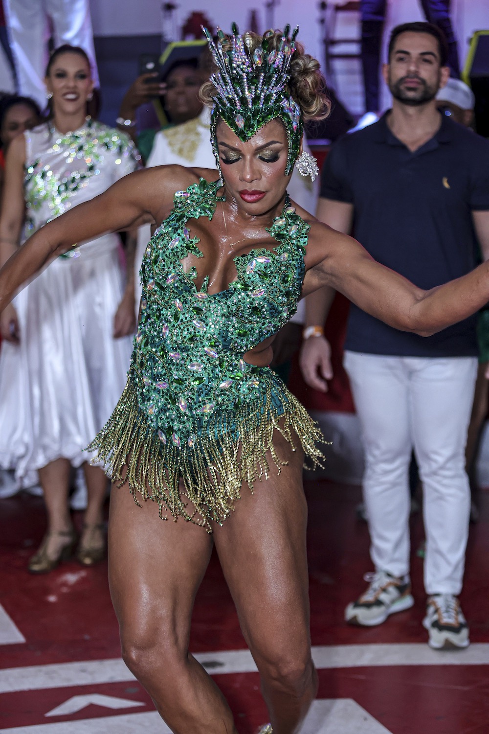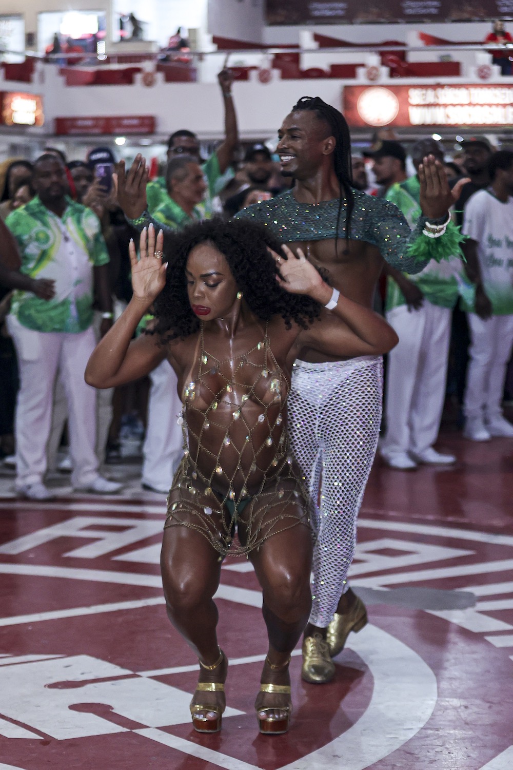 Quitéria Chagas e o muso Igor Maximyliano e a musa Deiseane de Jesus brilham na quadra do Salgueiro