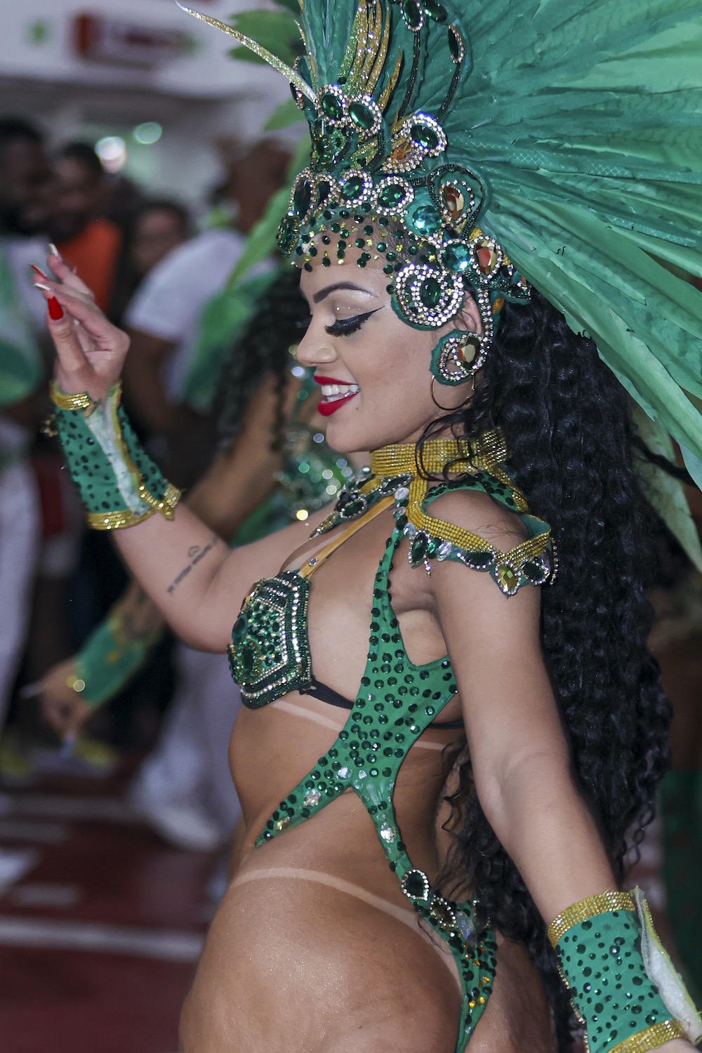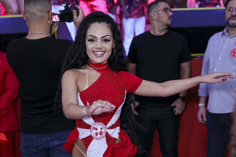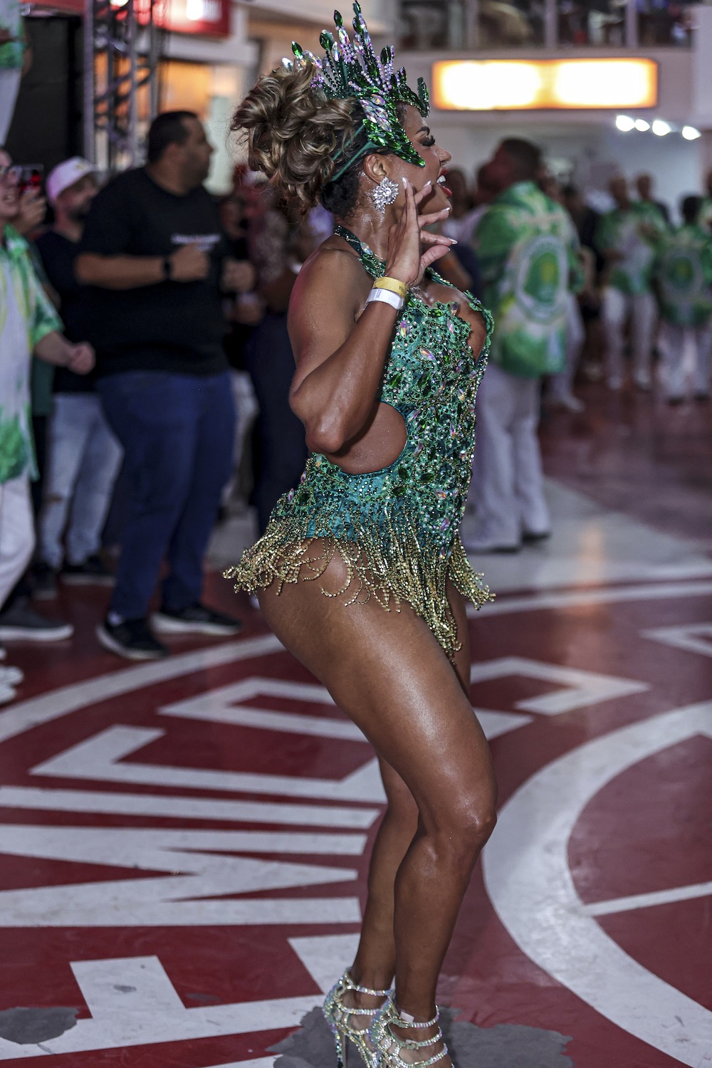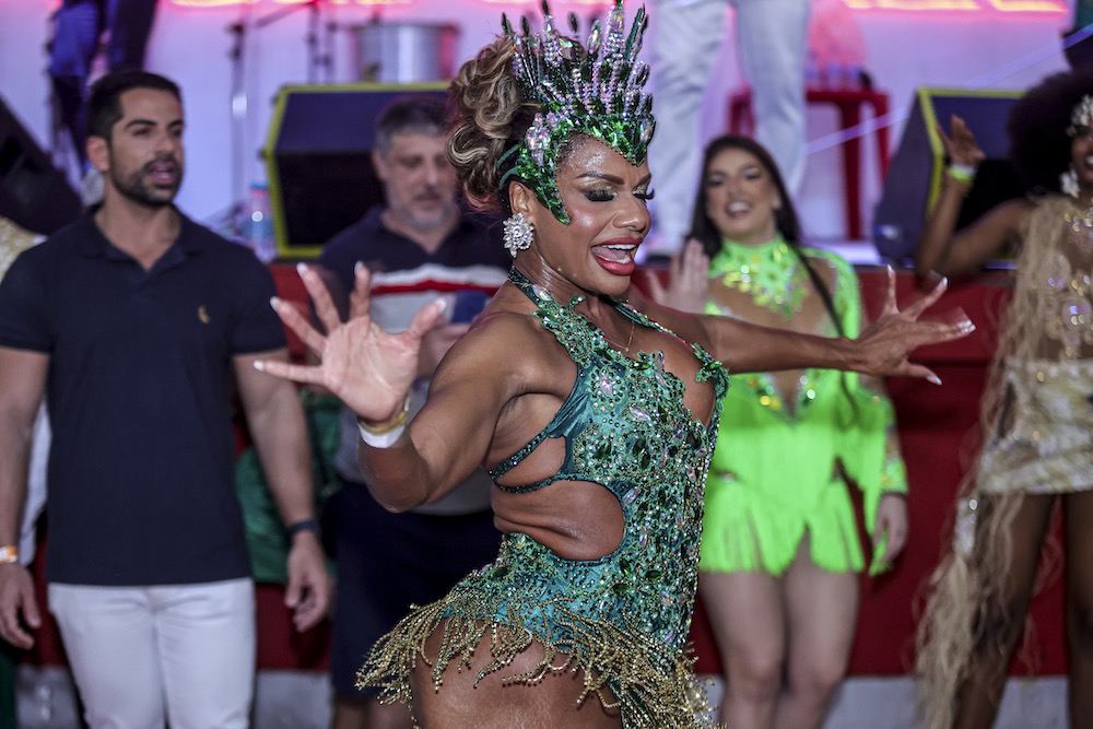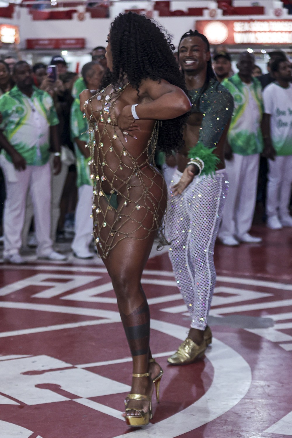 Quitéria Chagas e o muso Igor Maximyliano e a musa Deiseane de Jesus brilham na quadra do Salgueiro
