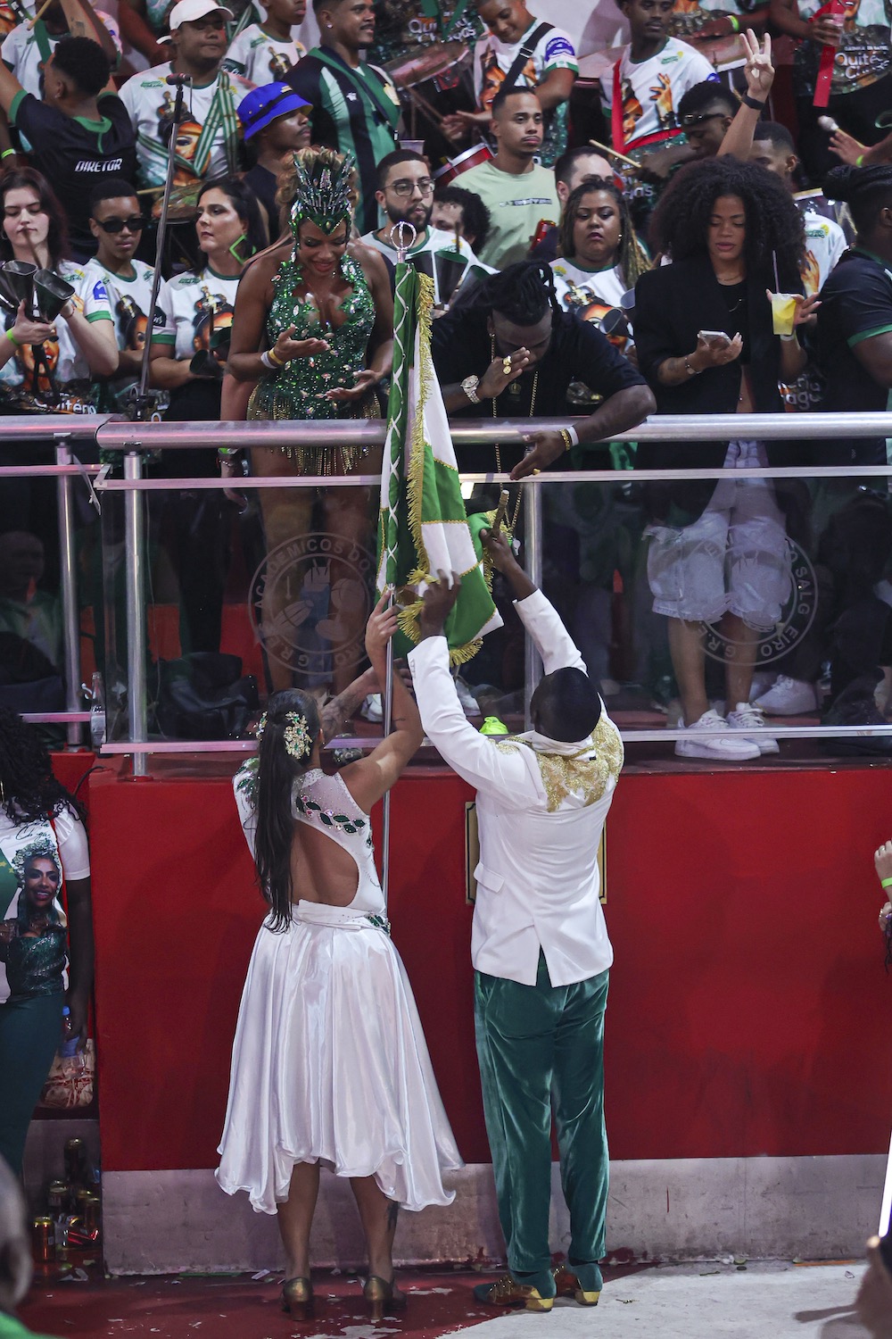 Já na apresentação da escola convidada com algumas apresentações de seus seguimentos, como passistas, bateria comandada pelo mestre Vitinho e sua rainha Quitéria Chagas que voltou a ser rainha de bateria do Império Serrano, cargo que antes era ocupado por Darlin Ferrattry, mãe da cantora Lexa, que estava no posto desde 2020. Ela já fez parte da agremiação em 2006 e agora retoma os trabalhos para 2025.
