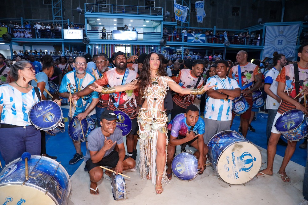 A apresentadora Sabrina Sato, rainha de bateria da “Swingueira de Noel”, esteve no ensaio da Unidos de Vila Isabel, na noite da última quarta-feira (22/10), para os preparativos do Carnaval 2026. Ela marcou presença no primeiro ensaio de quadra para o próximo carnaval, sambou e posou com as musas: Ainê Coutinho, Dandara Pliveira, Gabi Martins, inclusive com Luiza Caldi, a ex de seu atual marido Nicolas Prattes, e não só posaram lado a lado como mostraram carisma, beleza e samba no pé.