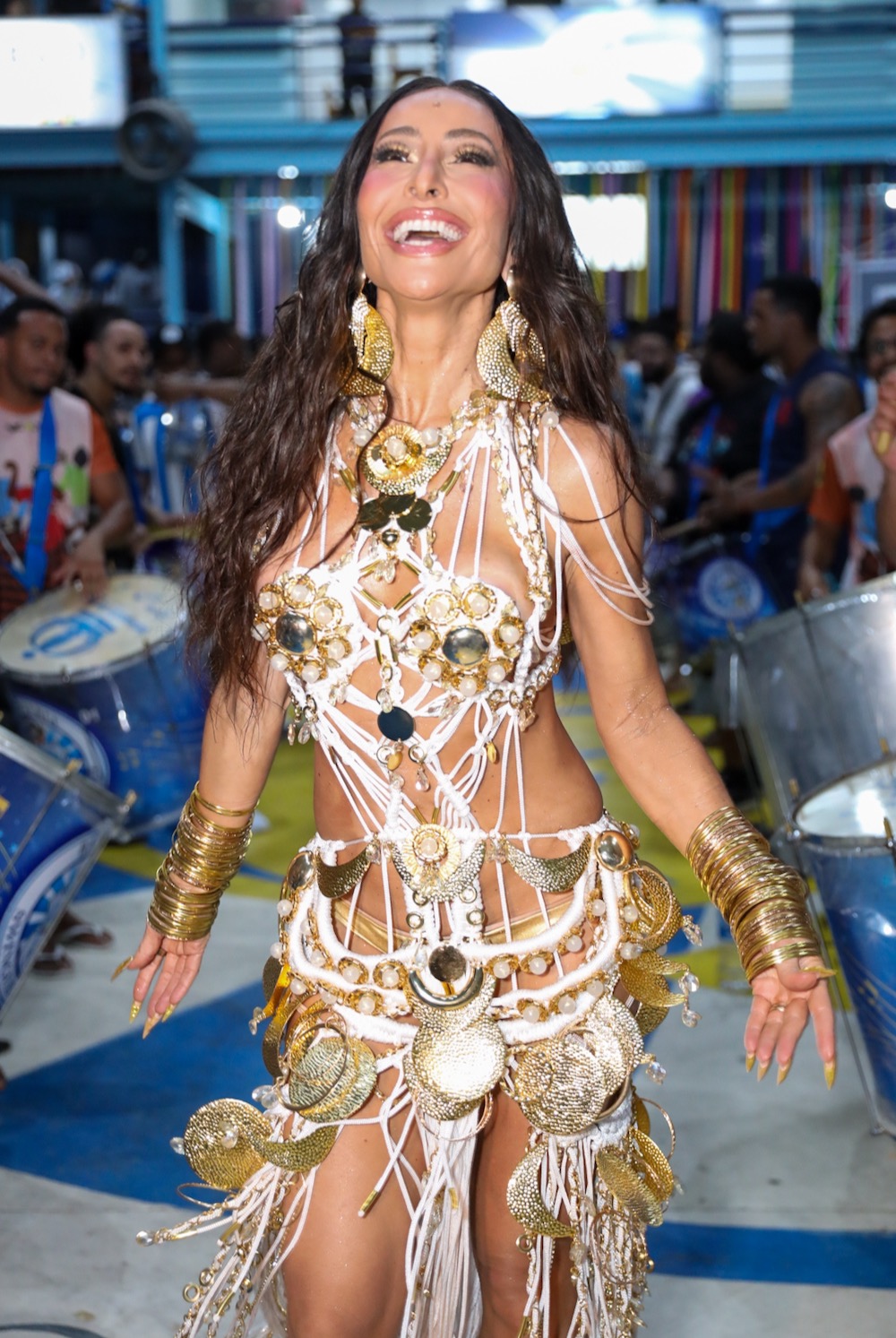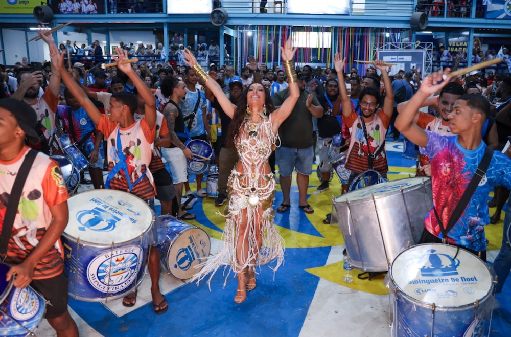 Rainha de bateria esbanjou beleza e simpatia à frente dos ritmistas da Swingueira de Noel, nesta quarta-feira (22)