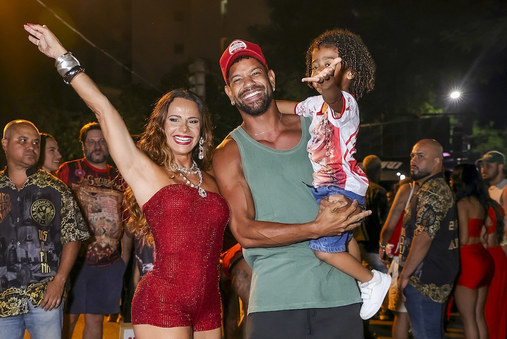 A humorista Bruna Louise recebe beijão em lançamento de programa em São Paulo