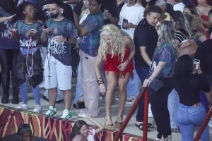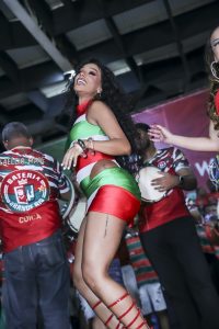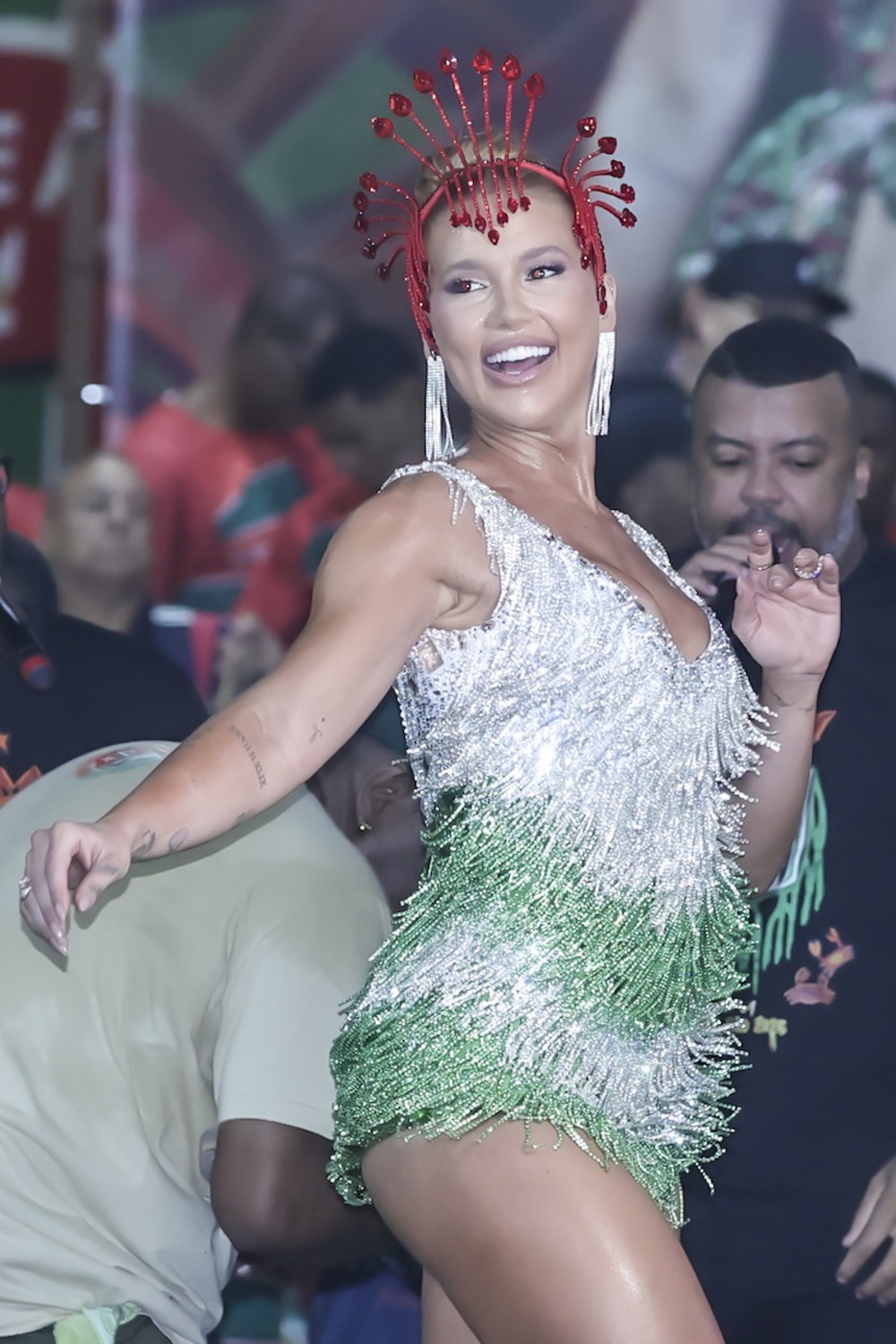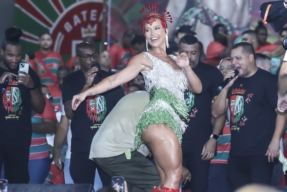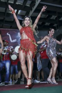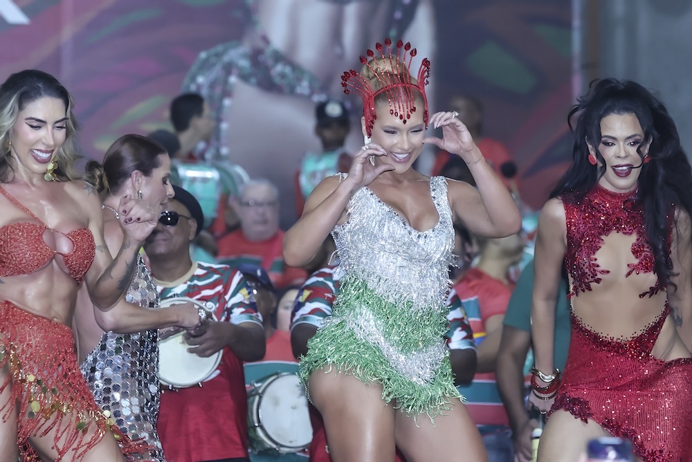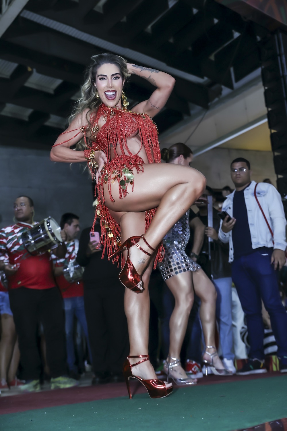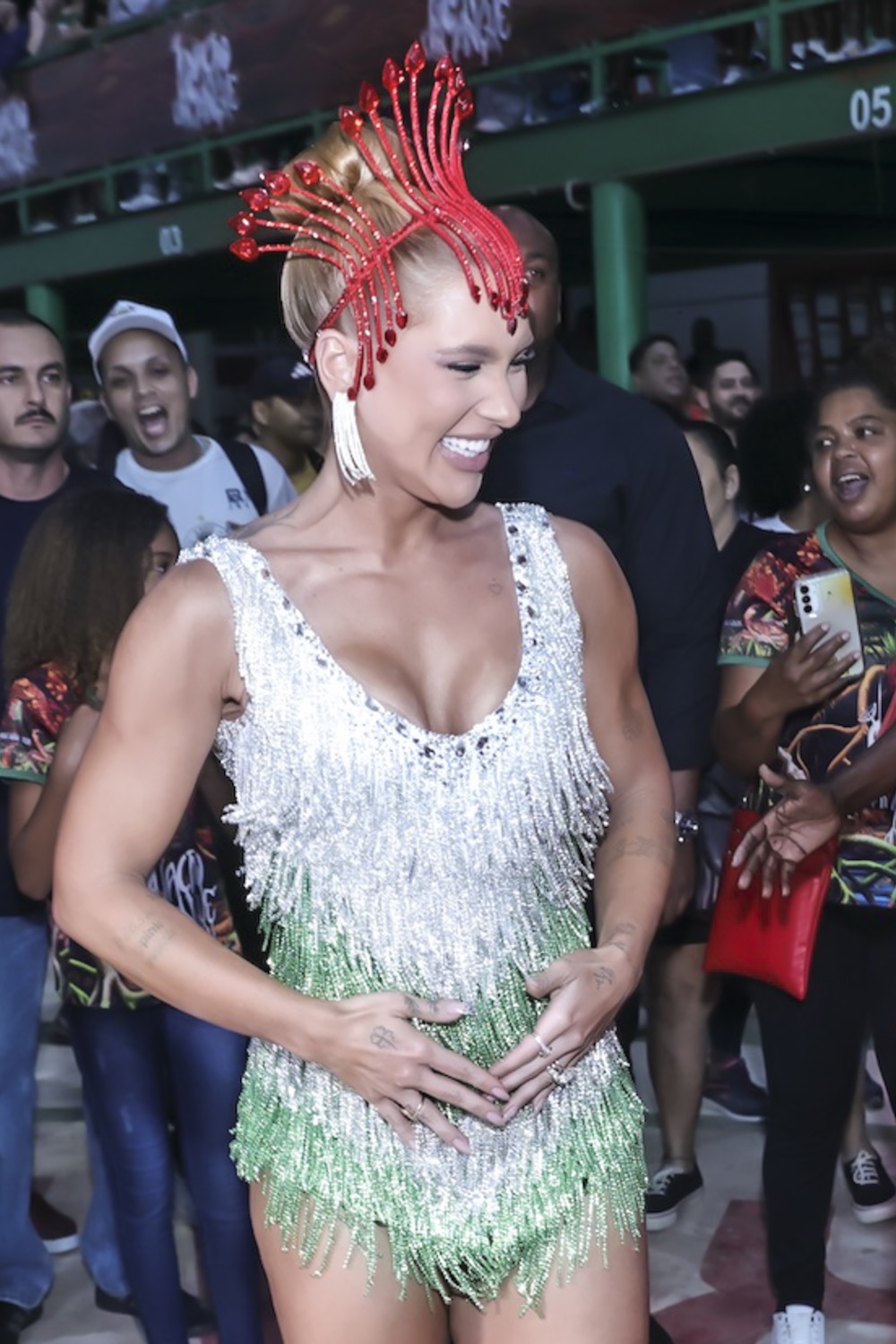 Que também brilhou no ensaio de quadra, foi a musa e esposa de Ludmilla, a influencer e dançarina Brunna Gonçalves, com um vestidinho nas cores da escola, colado ao corpo. “Queria ter sambado mais, mas eu estava sambando, a saia estava subindo. Não estava conseguindo dar o meu melhor. Não consegui dar o meu melhor hoje no samba. Entreguei o que eu pude, se não eu ficava pelada no meio do ensaio. Então sambei aqui, quietinha, mas semana que vem vocês me aguardem. Eu vou dar tudo de mim”, prometeu Brunna.