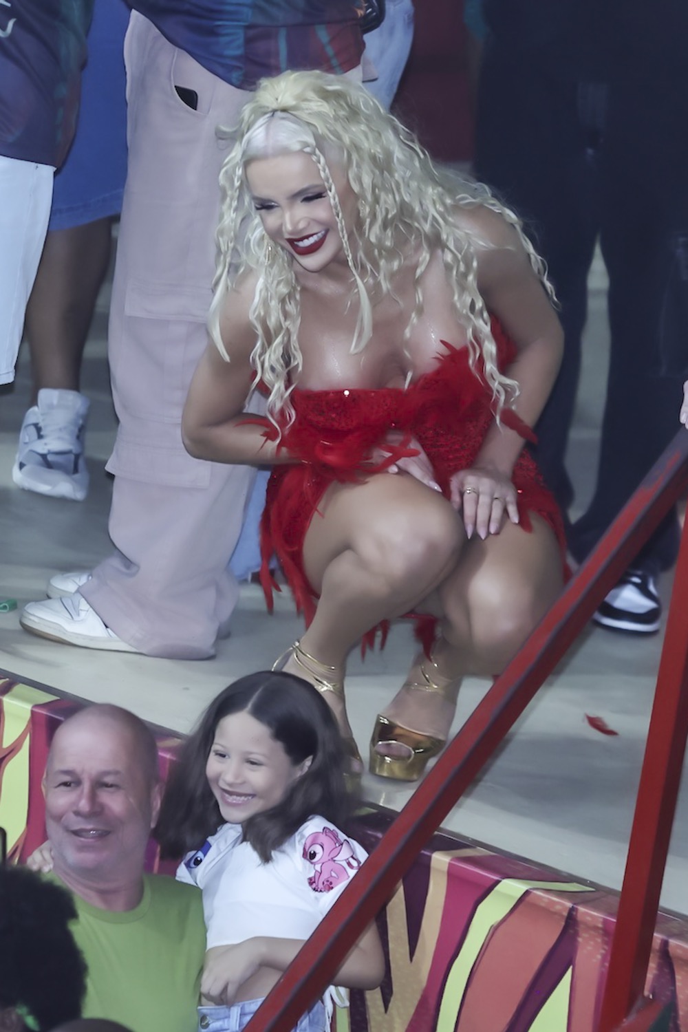 Ela passou o dia em São Paulo gravando o Sabadou, seu programa no SBT, e pegou um voo correndo para o Rio para participar do ensaio da escola de samba. Logo depois, retornou para São Paulo para celebrar o aniversário da filha, Maria Flor, nesta quarta-feira (22).