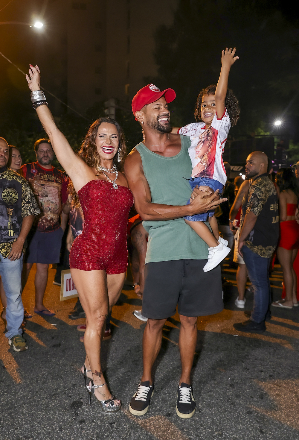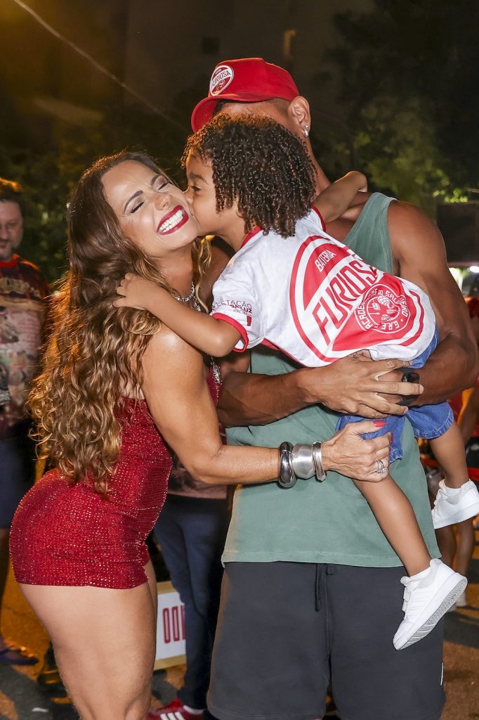 Viviane Araújo, de 50 anos, participou do primeiro ensaio de rua do Salgueiro de 2026 nesta quinta-feira, 08, no Rio de Janeiro. A atriz foi acompanhada pelo marido Guilherme Militão, de 36, e pelo filho Joaquim, de 02, que roubou a cena e, muito animado, chegou até a brincar de sambar com a mãe.